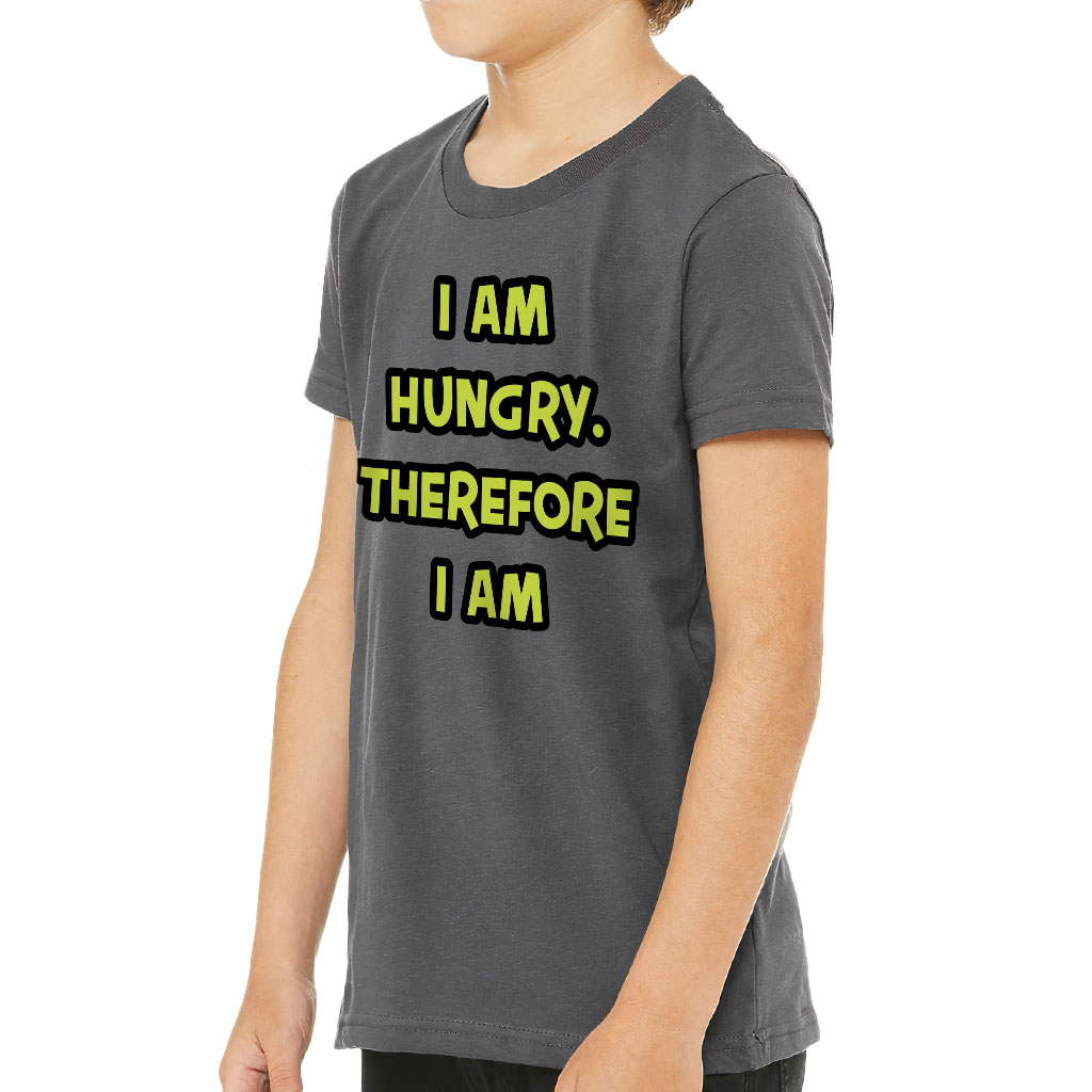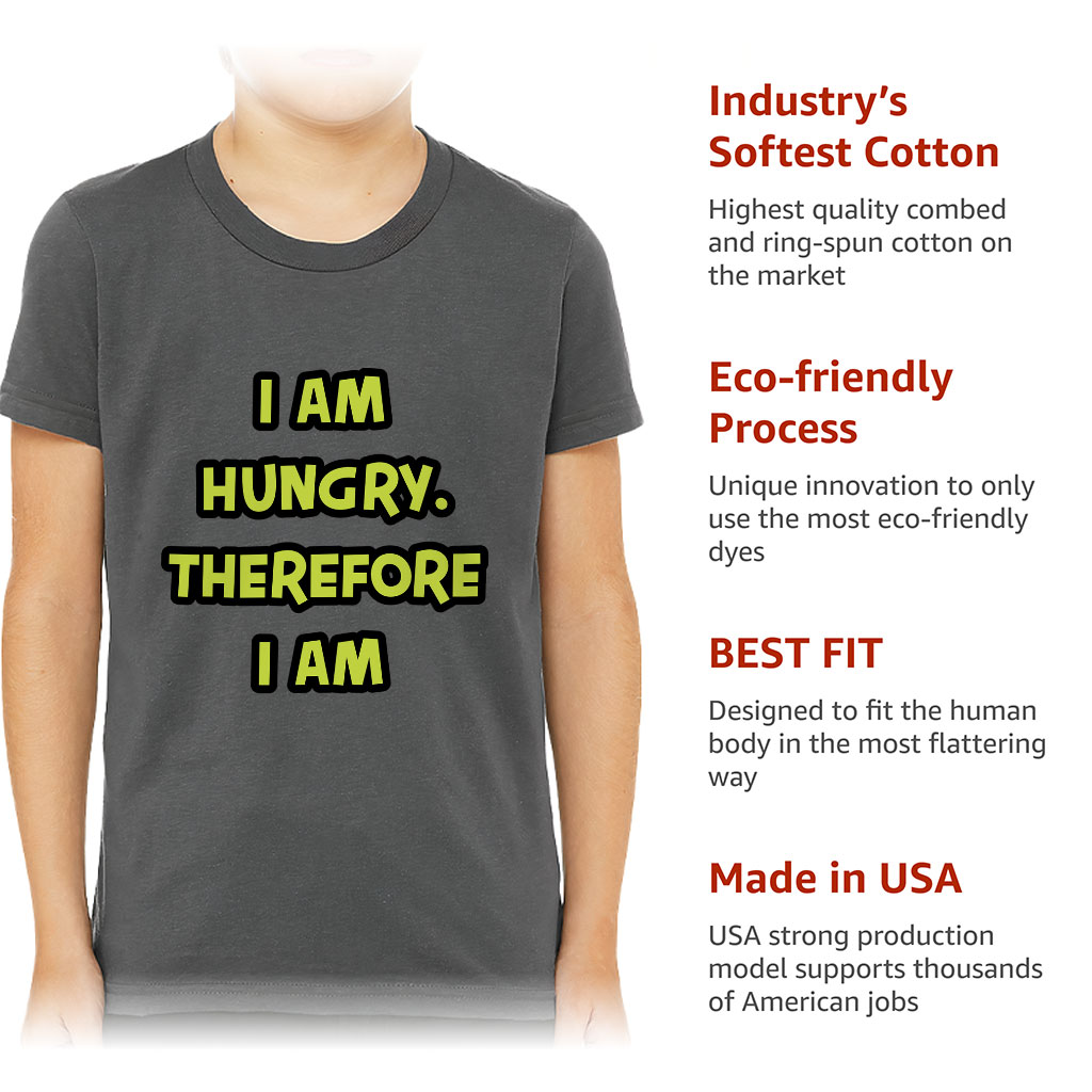 I Am Hungry Kids’ T-Shirt is no ordinary piece of clothing. Its crew neck and short