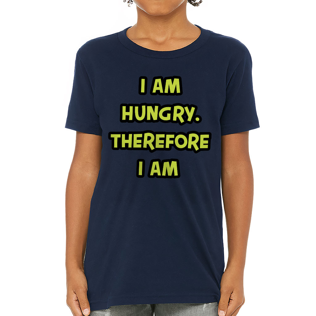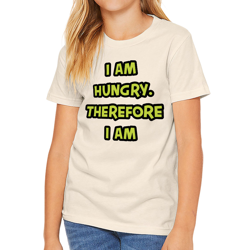 I Am Hungry Kids’ T-Shirt is no ordinary piece of clothing. Its crew neck and short