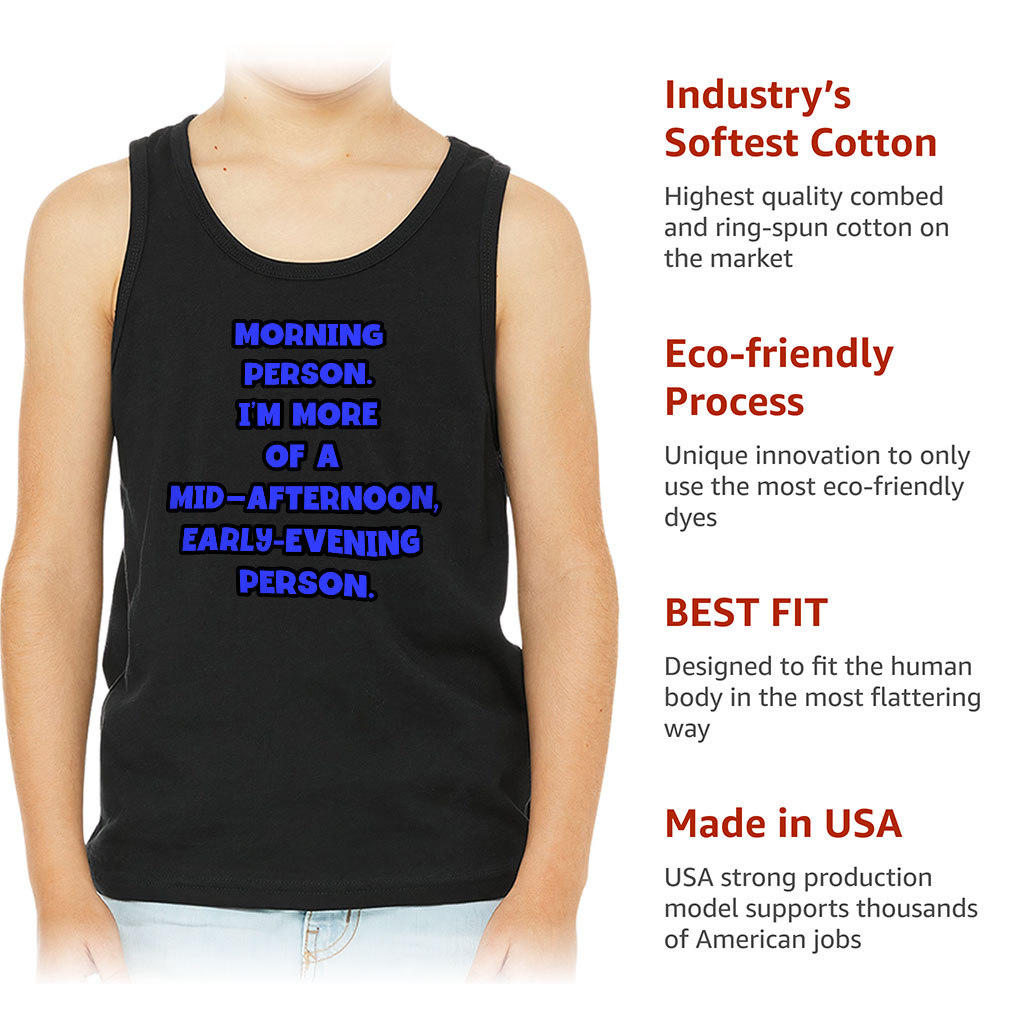 I Am Not a Morning Person Kids’ Jersey Tank is no ordinary piece of clothing. Its top-stitched hood and