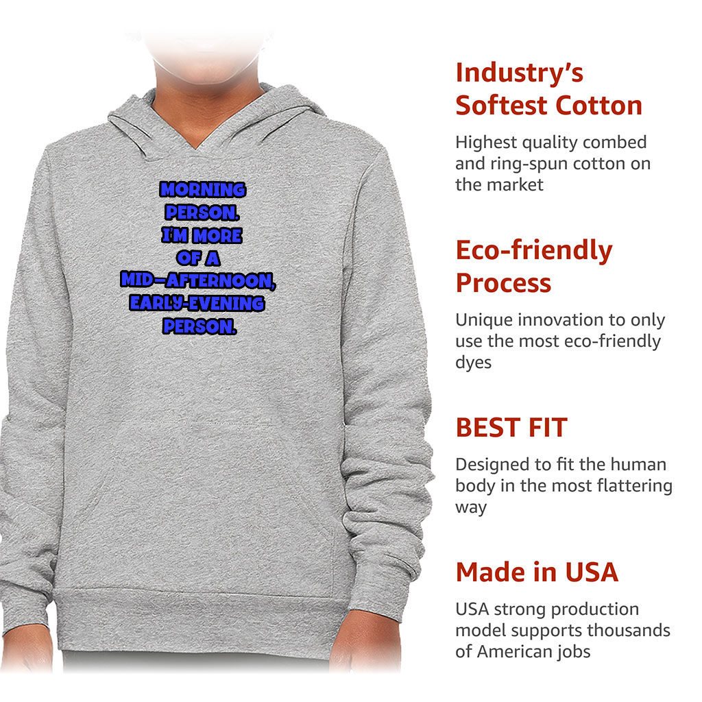 I Am Not a Morning Person Kids’ Sponge Fleece Hoodie is no ordinary piece of clothing. Its top-stitched hood and