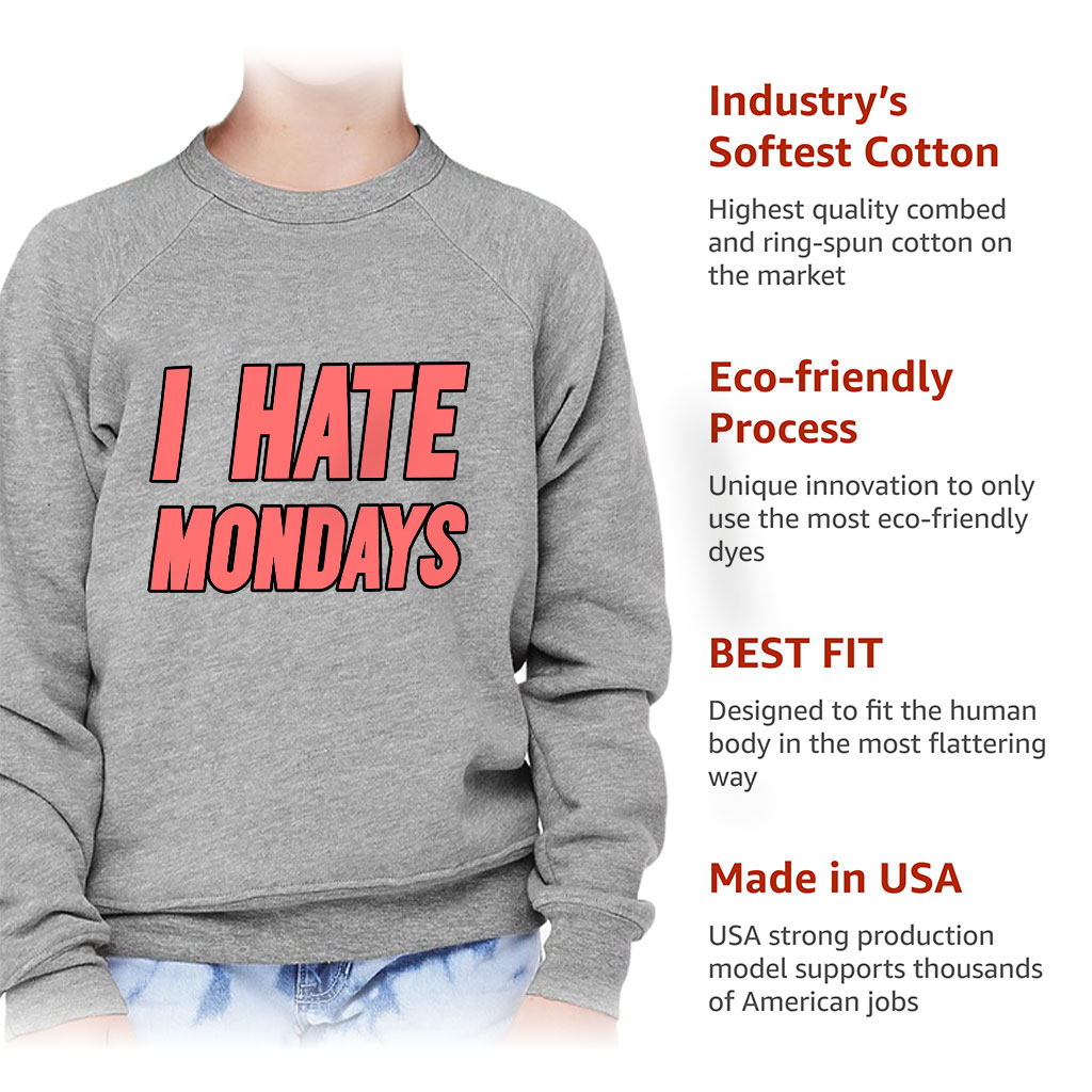 I Hate Mondays Kids’ Raglan Sweatshirt will be a great gift for Birthdays, graduation ceremonies, Christmas, Thanksgiving, or any special event. Your loved ones will be pleased with such a sign of attention from you.