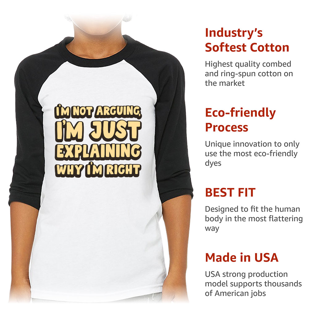 I M Not Arguing Kids’ Baseball T-Shirt – Sarcasm 3/4 Sleeve T-Shirt – Funny Quotes Baseball Tee