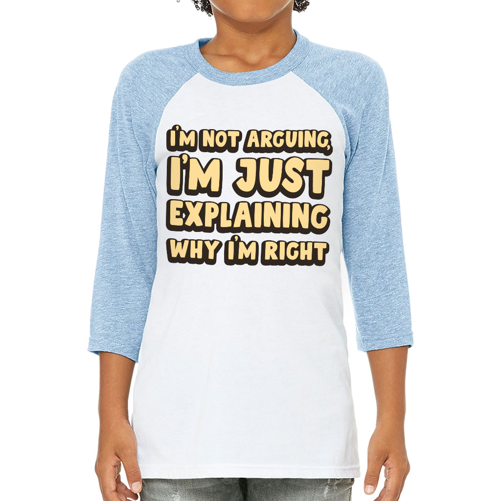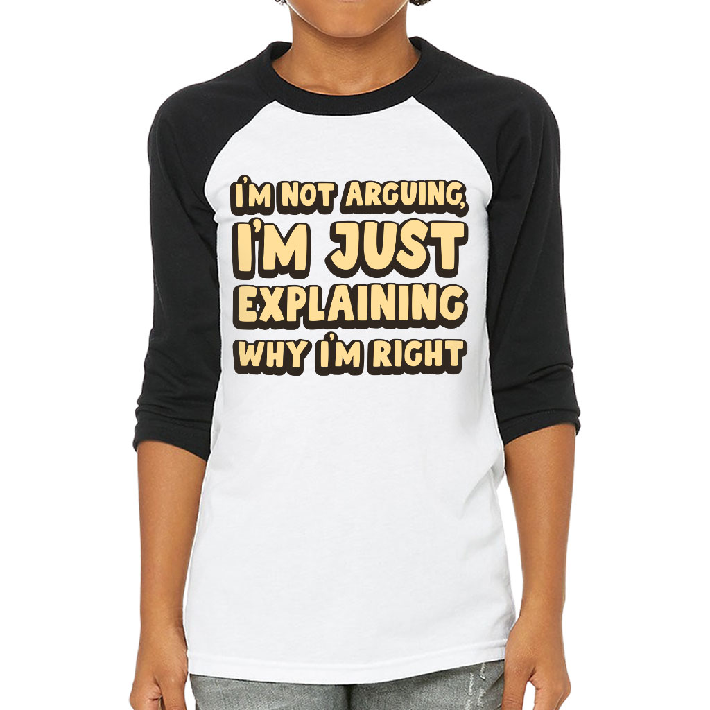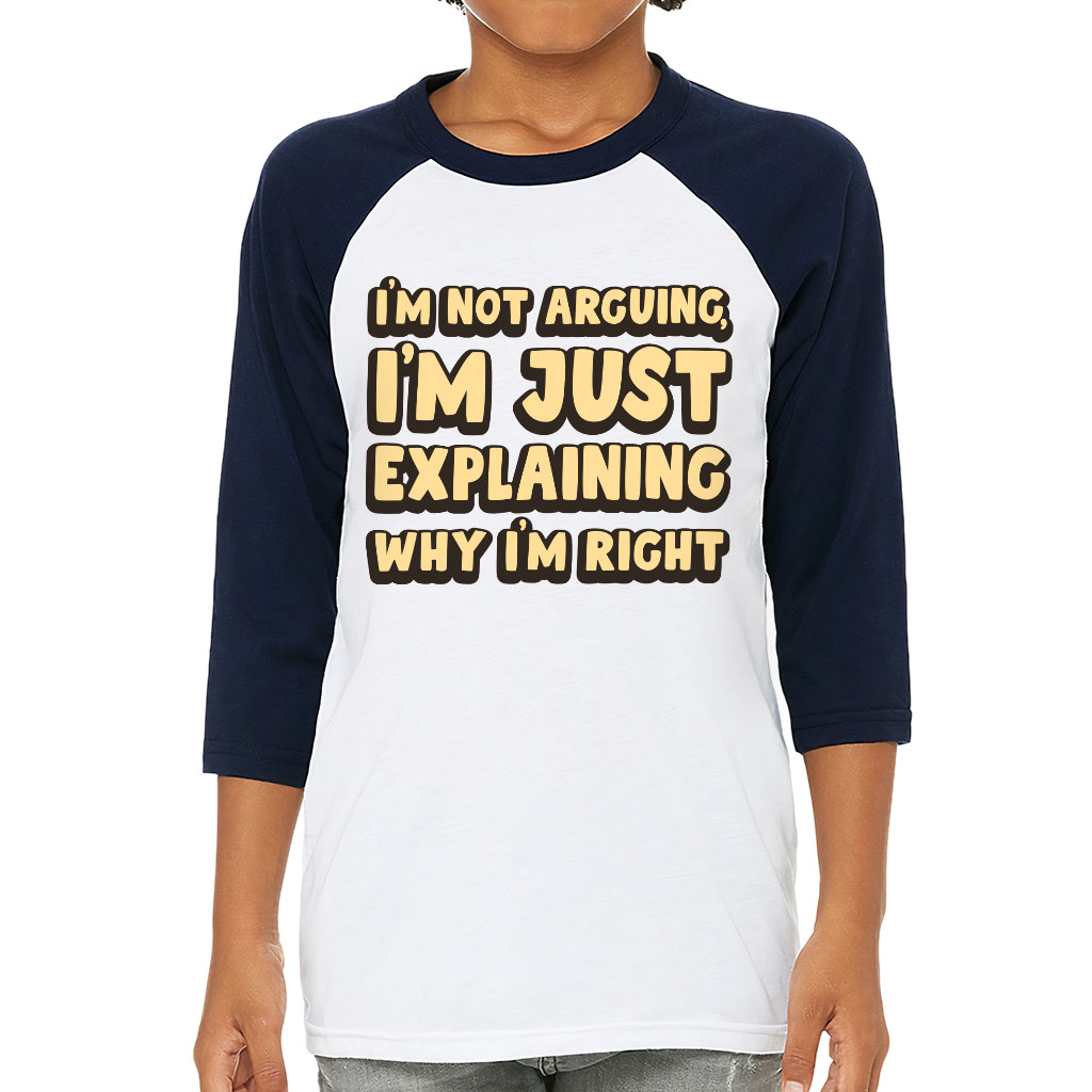 I M Not Arguing Kids’ Baseball T-Shirt – Sarcasm 3/4 Sleeve T-Shirt – Funny Quotes Baseball Tee