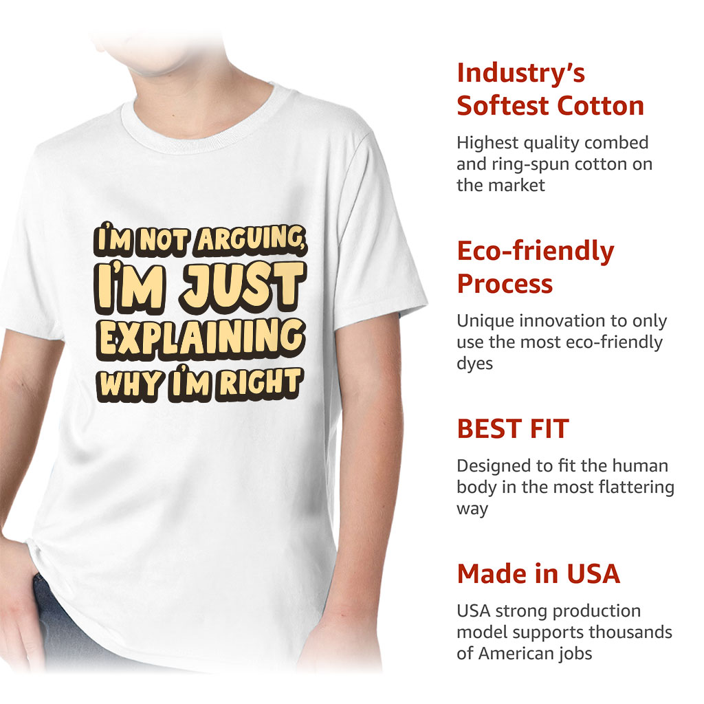 I M Not Arguing Kids’ Classic Fit T-Shirt is durable and long-lasting and has an amazing graphic, a comfortable fit, and an easy-to-dress design, making this one the essential top in your active kid’s favorite outfits.