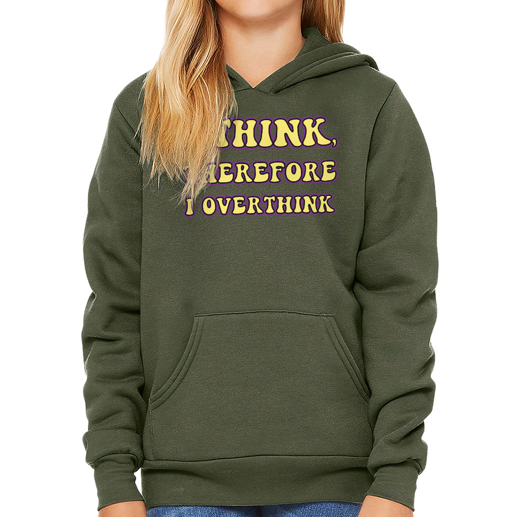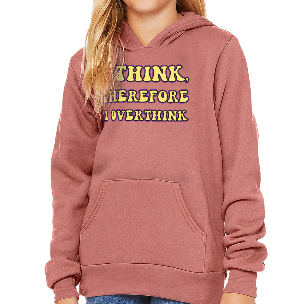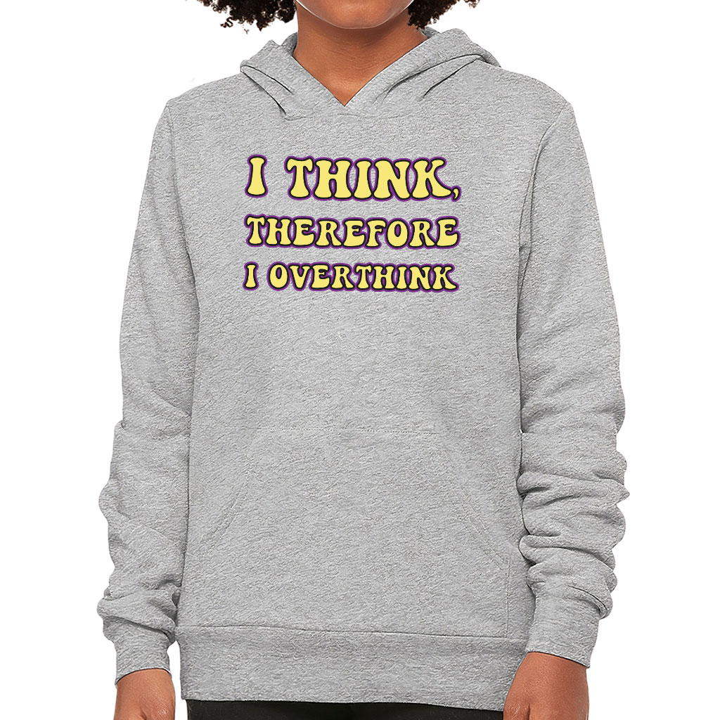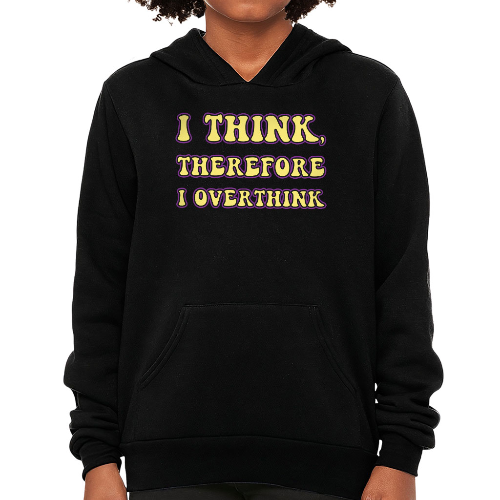 I Overthink Kids’ Sponge Fleece Hoodie is no ordinary piece of clothing. Its top-stitched hood and