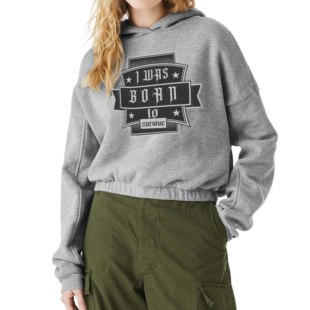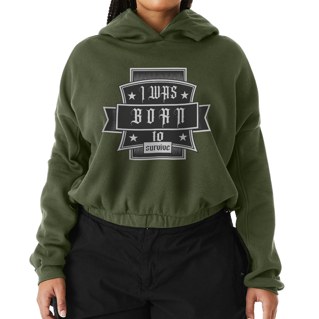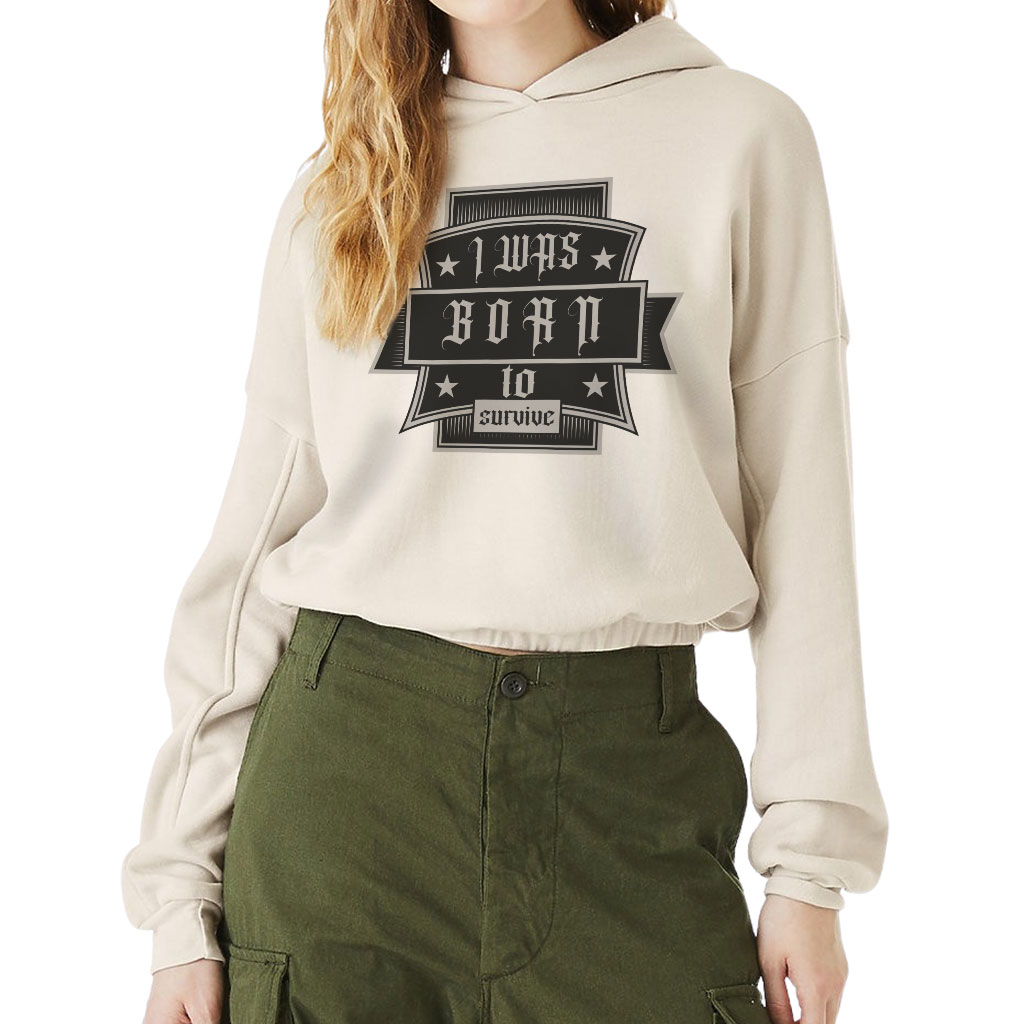 I Was Born to Survive Cinched Bottom Hoodie – Self Love Women’s Hoodie – Printed Hooded Sweatshirt