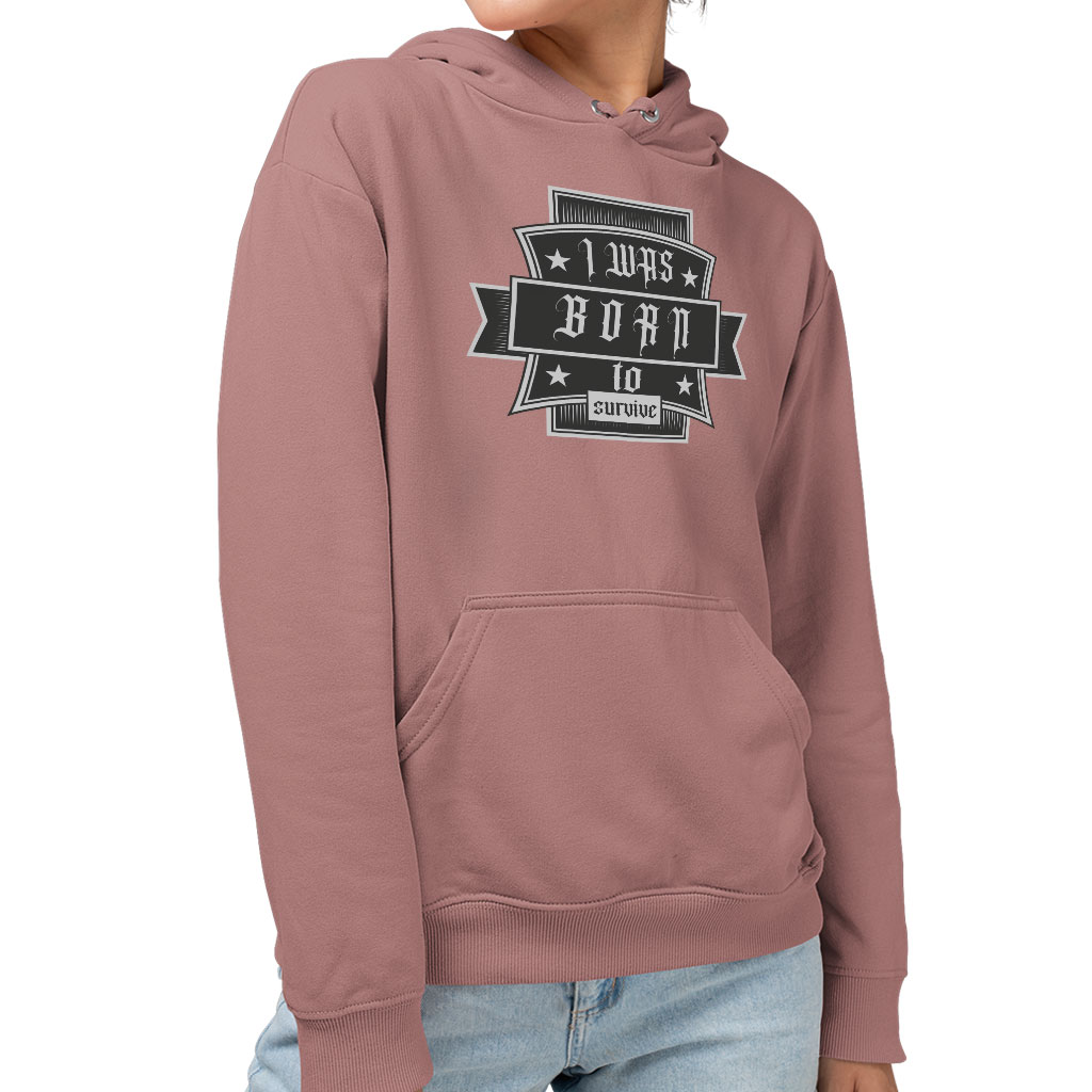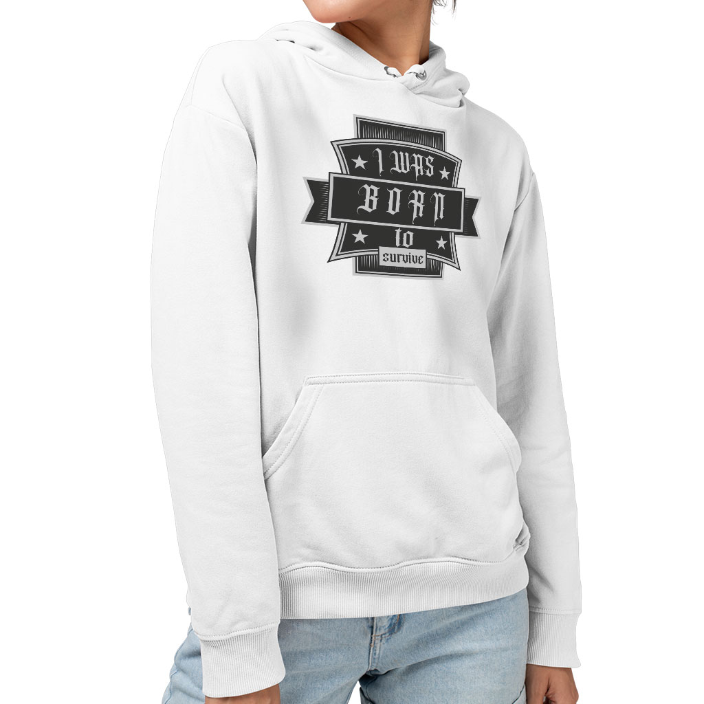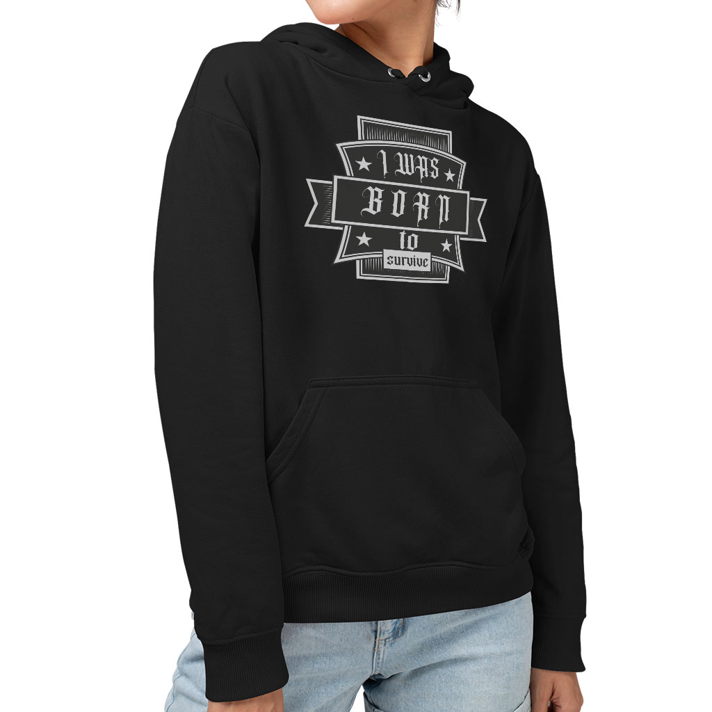 I Was Born to Survive Sponge Fleece Hoodie – Self Love Hoodie – Printed Hooded Sweatshirt
