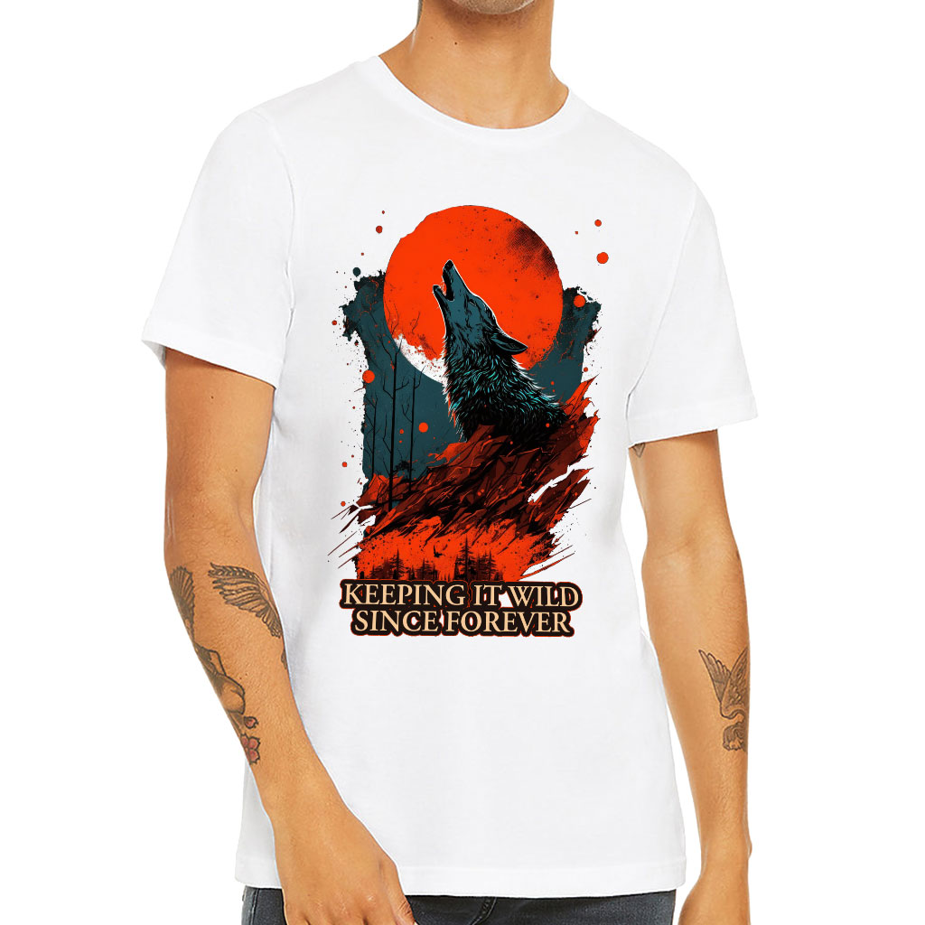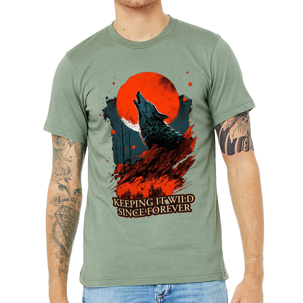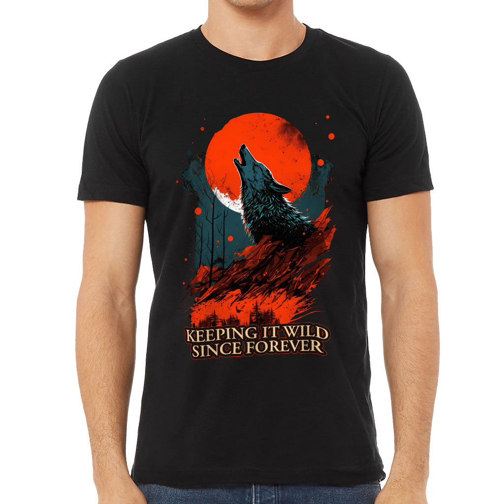 Red Moon T-Shirt is perfect for any occasion! With a retail fit and shoulder taping, this men’s classic makes a statement of style and class. Made of extremely soft cotton, the Short Sleeve T-Shirt ensures comfort all day long. Sideseamed construction ensures an excellent fit that is stylish and comfortable. Wolf Print Short Sleeve Tee is perfect to pair with jeans or shorts for any casual event!