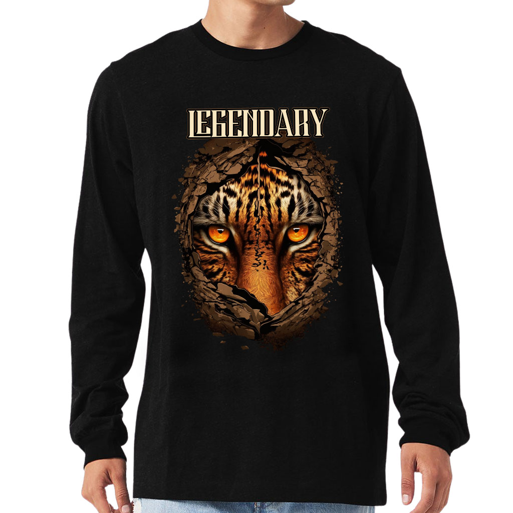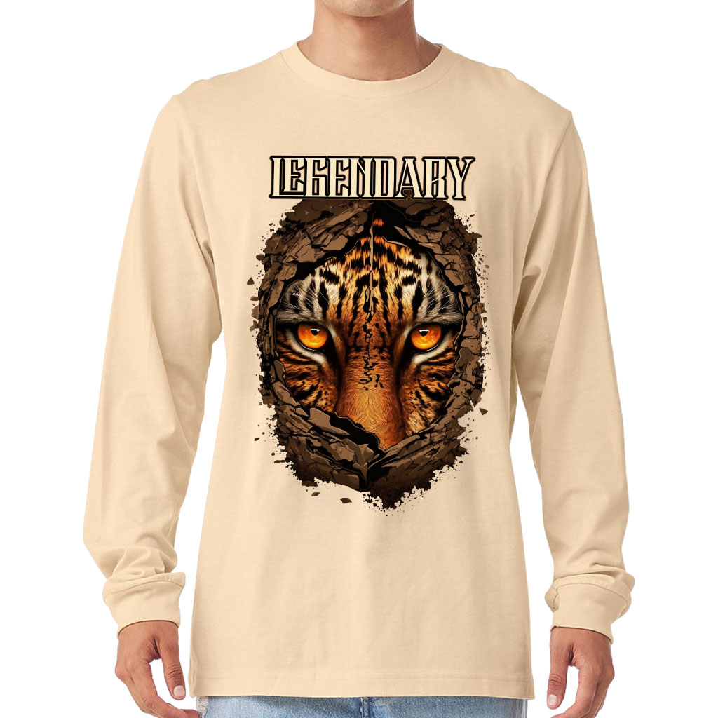 Legendary Tiger Long Sleeve T-Shirt is proudly made with 7x less water than average manufacturers, in recycle-friendly facilities that also guarantee zero sweatshop conditions. Wild Eyes Long Sleeve T-Shirt is designed and printed in California.