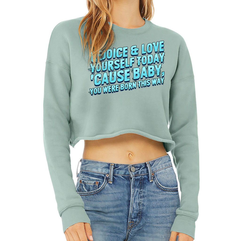 Providing comfort and style, You Were Born This Way Women’s Sweatshirt is a stylish addition to any wardrobe. The lightweight material is sure to keep you cozy on colder days, while the raw edge hem and dropped shoulder add a modern touch to this classic piece. Look chic and stay warm without compromising on comfort with this sweatshirt. Whether it’s for your next game of soccer in the park or a relaxing night in with friends, be comfortable in style with Quotes Crop Crew Sweatshirt.