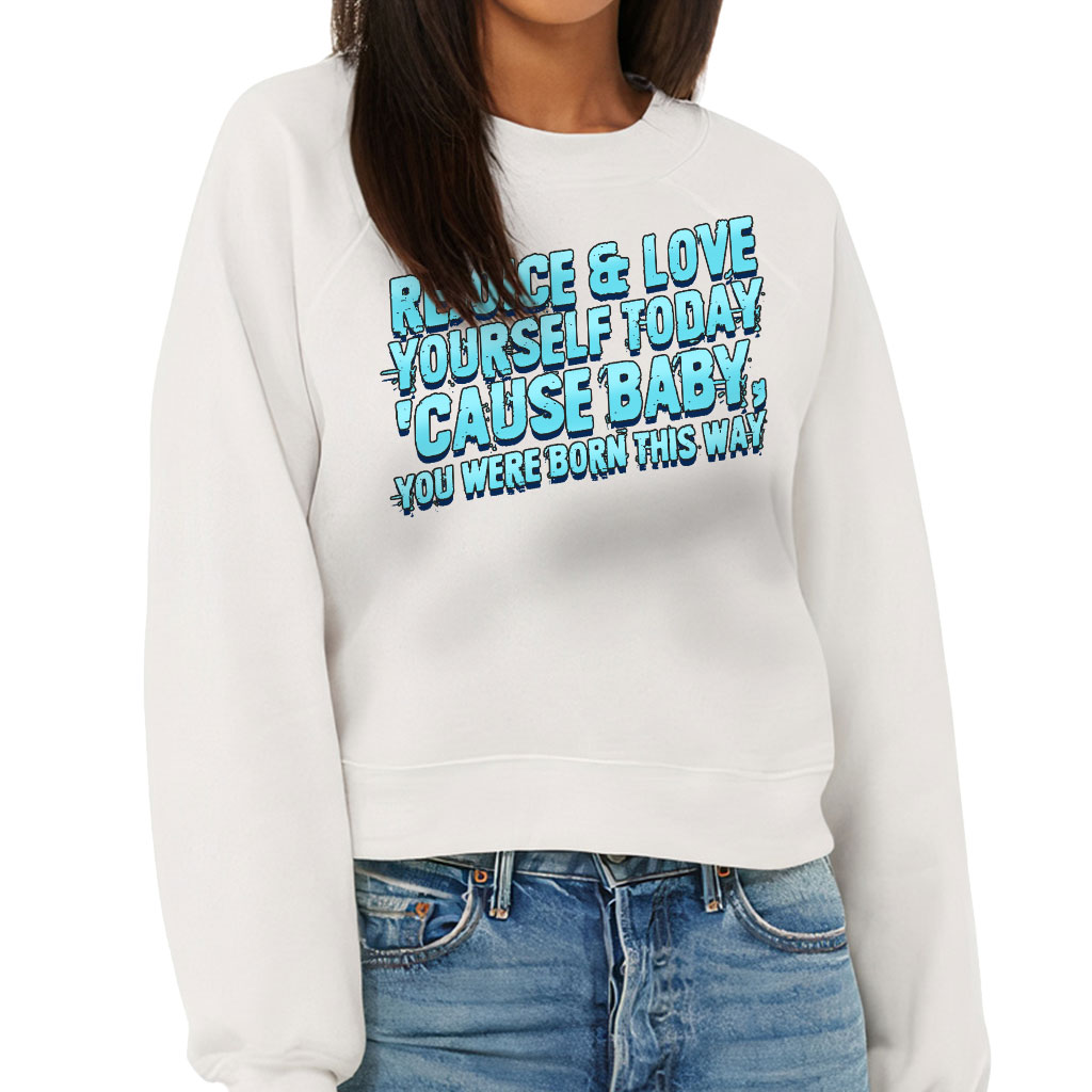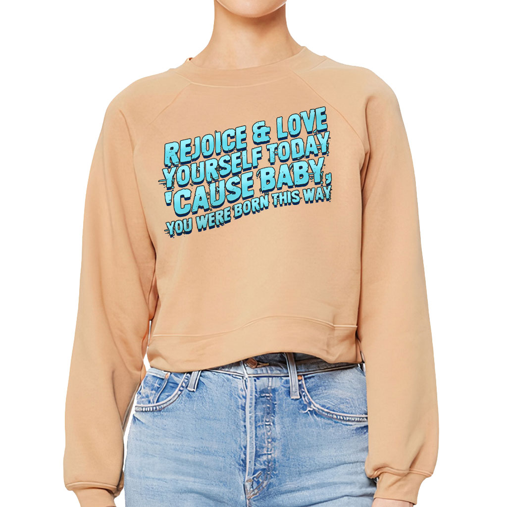 Looking for some cozy comfort? You Were Born This Way Women’s Sweatshirt is just what you need! With contoured seaming on the raglan sleeves, it’s perfect for those lazy days, but stylish enough for heading out and about. This mid-length classic, made with our favorite sponge fleece, has a flattering neck bind and cuffed hems. Best of all, it’s as soft and snuggly as can be! So when you’re in search of something to add warmth to your wardrobe this season, Quotes Pullover is here for you.