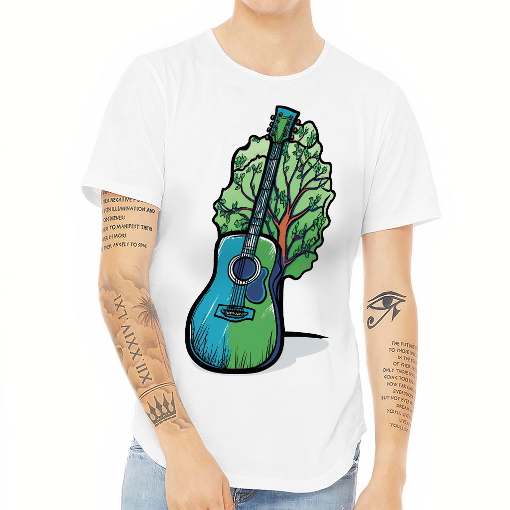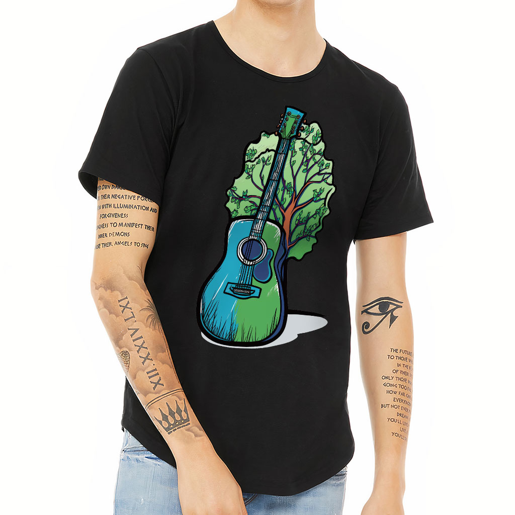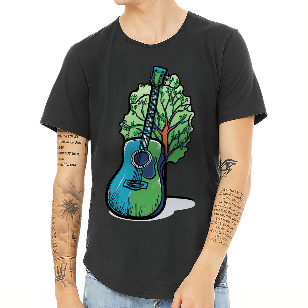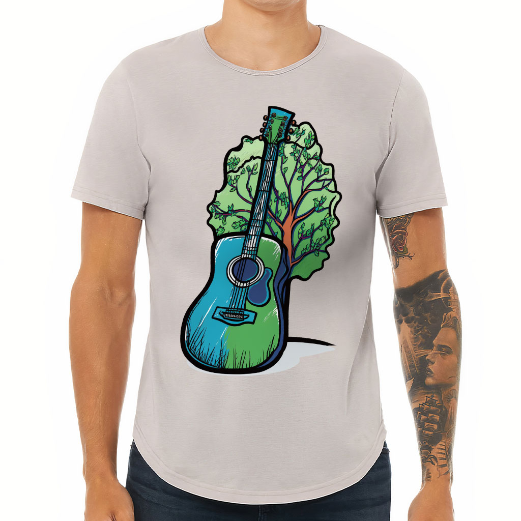 Music Guitar Curved Hem Tee is no ordinary piece of clothing. Its 3/8 neck binding, subtle