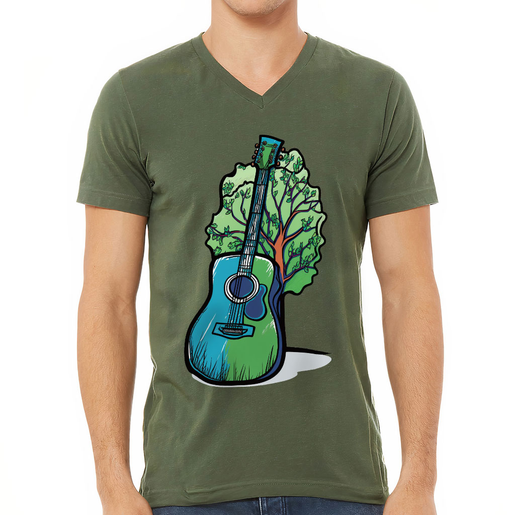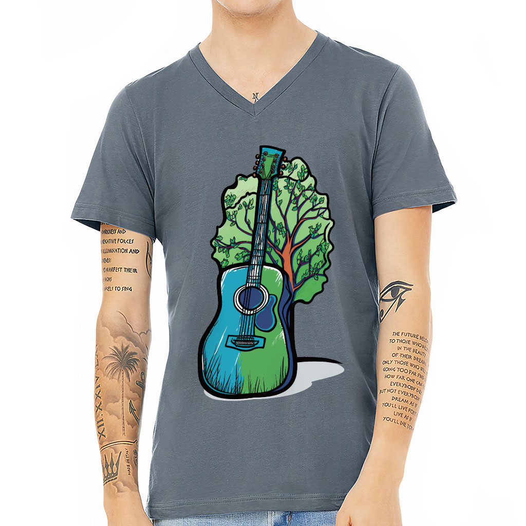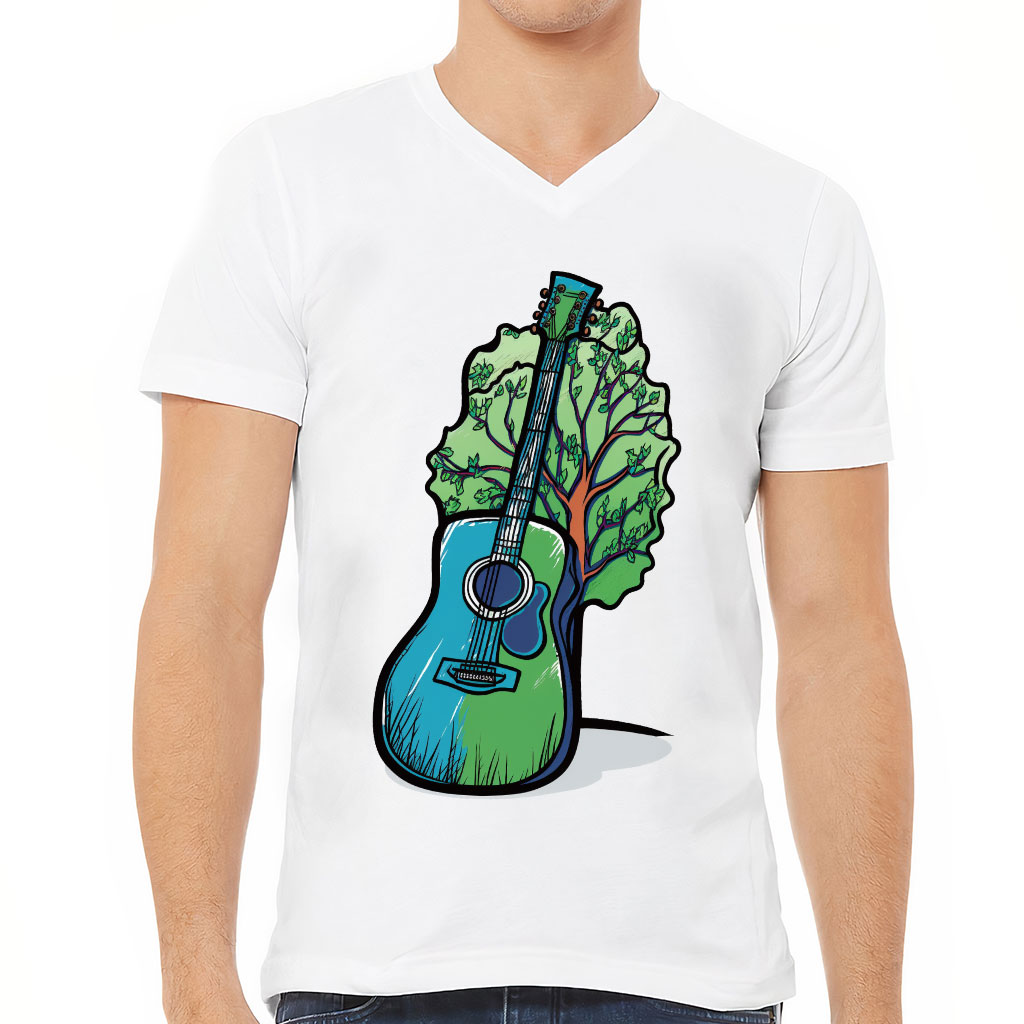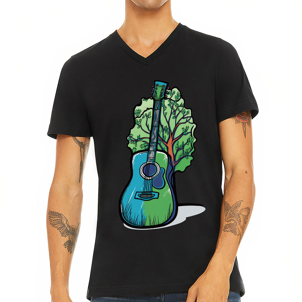 Music Guitar V-Neck T-Shirt – Hippie Guitar T-Shirt – Art Print V-Neck Tee