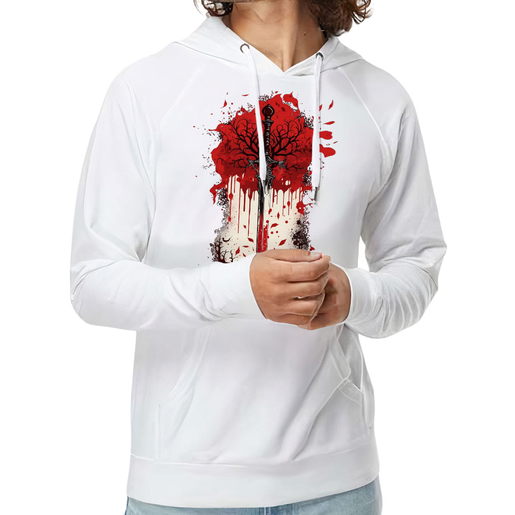 Introducing Sword Hooded Sweatshirt – the perfect way to keep warm and look great all at once! This stylish men’s hoodie is brought to life with a loopback terry fabric that makes it soft and comfortable enough for daily wear or exercise. The unique double shoelace drawcords are held by antique silver metal tips, creating an eye-catching design that sets the piece apart from others. Last but not least, this stylish hoodie comes complete with twill neck tape and 1×1 ribbing at its cuffs and waistband. Fantasy Hoodie is the perfect addition to your wardrobe this season!