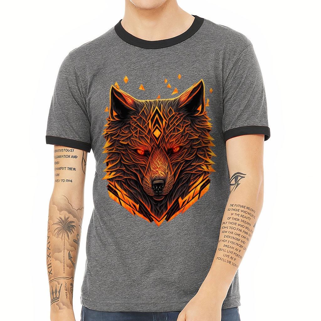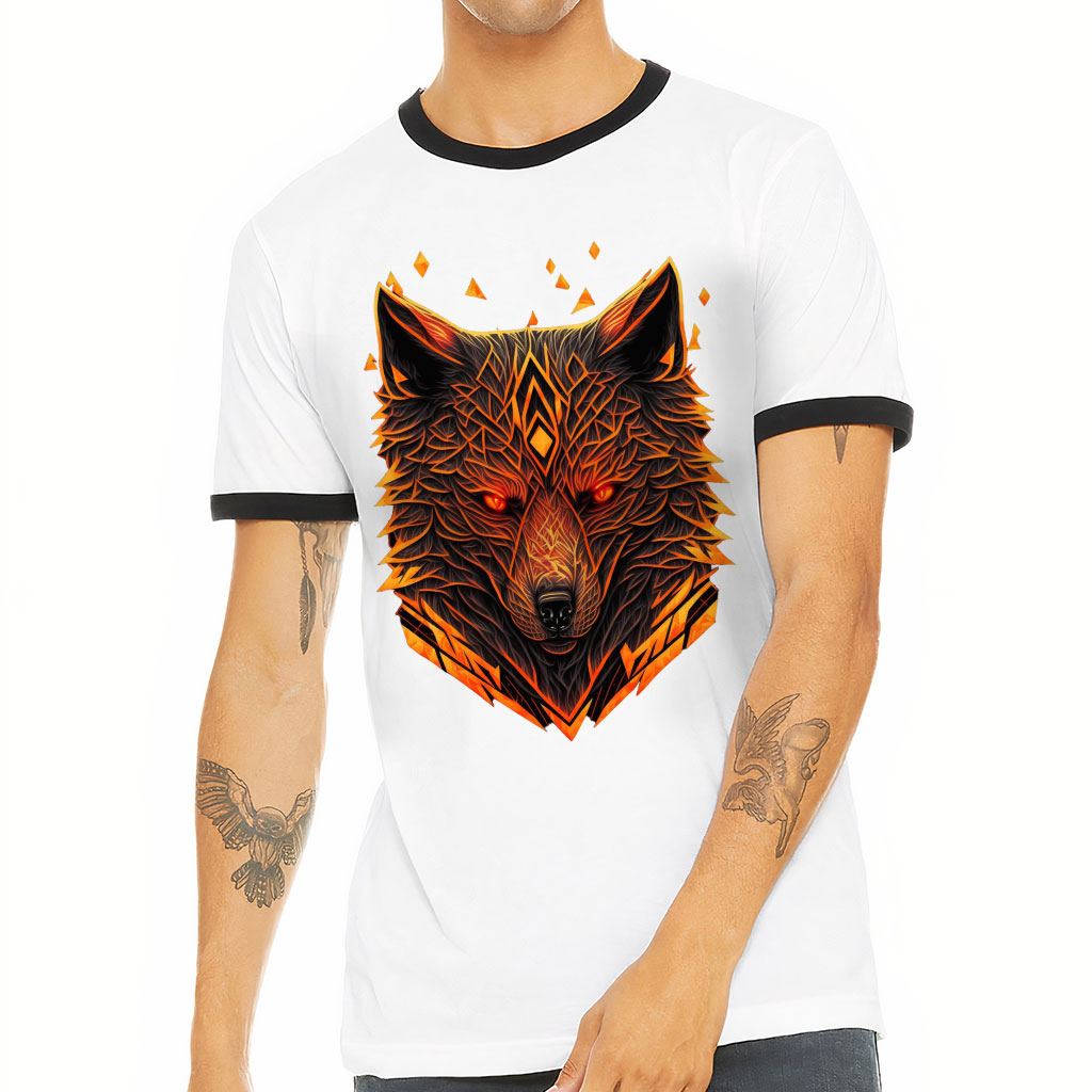 Mystic Wolf Ringer T-Shirt – Magic Wolf T-Shirt – Wolf Print Ringer Tee