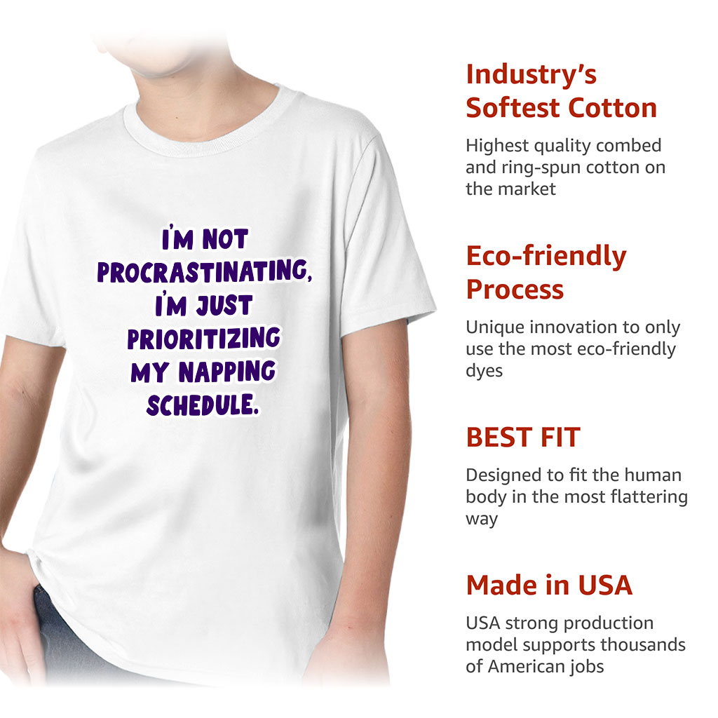 Not Procrastinating Kids’ Classic Fit T-Shirt is durable and long-lasting and has an amazing graphic, a comfortable fit, and an easy-to-dress design, making this one the essential top in your active kid’s favorite outfits.