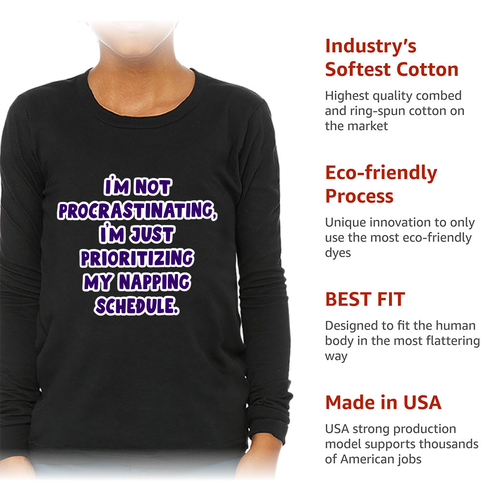 With a simple design and solid colors, Not Procrastinating Kids’ Long Sleeve T-Shirt can be paired with other outfits as an undershirt or worn alone, simple and elegant, classic and fashionable.