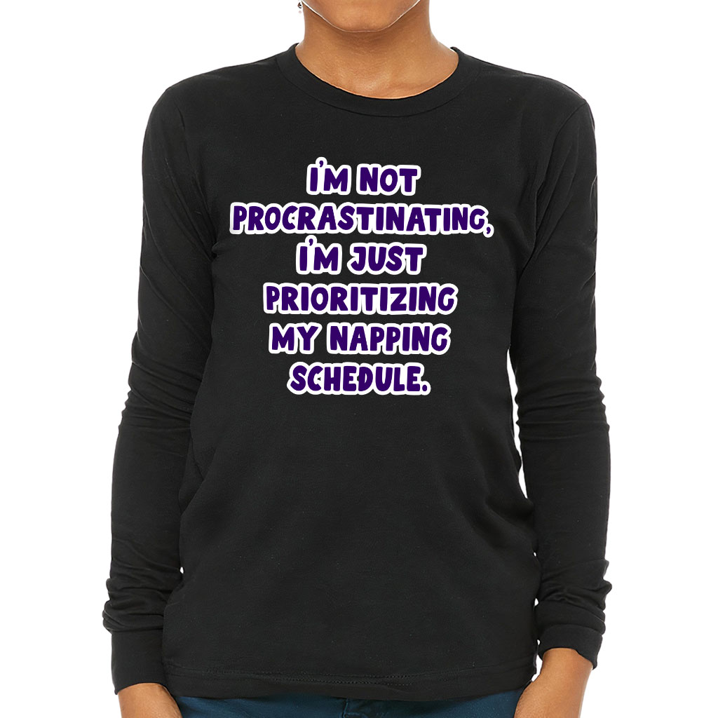 With a simple design and solid colors, Not Procrastinating Kids’ Long Sleeve T-Shirt can be paired with other outfits as an undershirt or worn alone, simple and elegant, classic and fashionable.