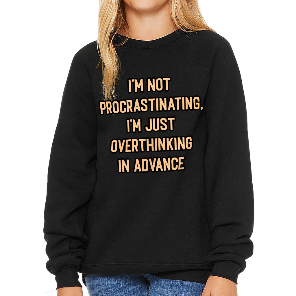 This remarkably soft pullover crewneck sweatshirt lends itself to daily wear and year-round layering. Not Procrastinating Kids’ Raglan Sweatshirt features ribbed cuffs and a waistband, a crew neck, and a fashion-forward fleece fabrication.