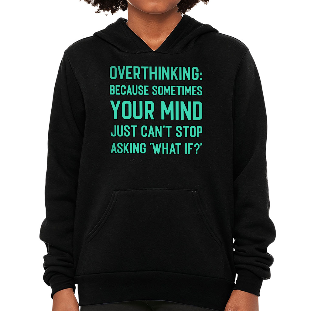 Overthinking Kids’ Sponge Fleece Hoodie – What If Kids’ Hoodie – Quotes Printed Hoodie for Kids