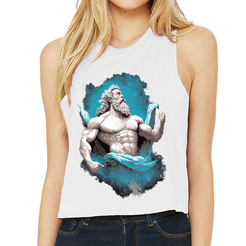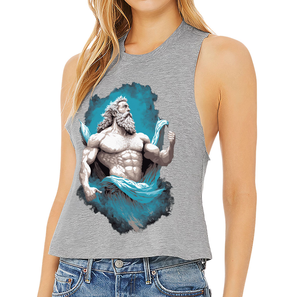 Poseidon Statue Racerback Cropped Tank is made of high-quality materials. 52/48 Airlume combed and ring-spun cotton/polyester jersey. Athletic Heather is 90/10 Airlume combed and ring-spun cotton/polyester jersey.