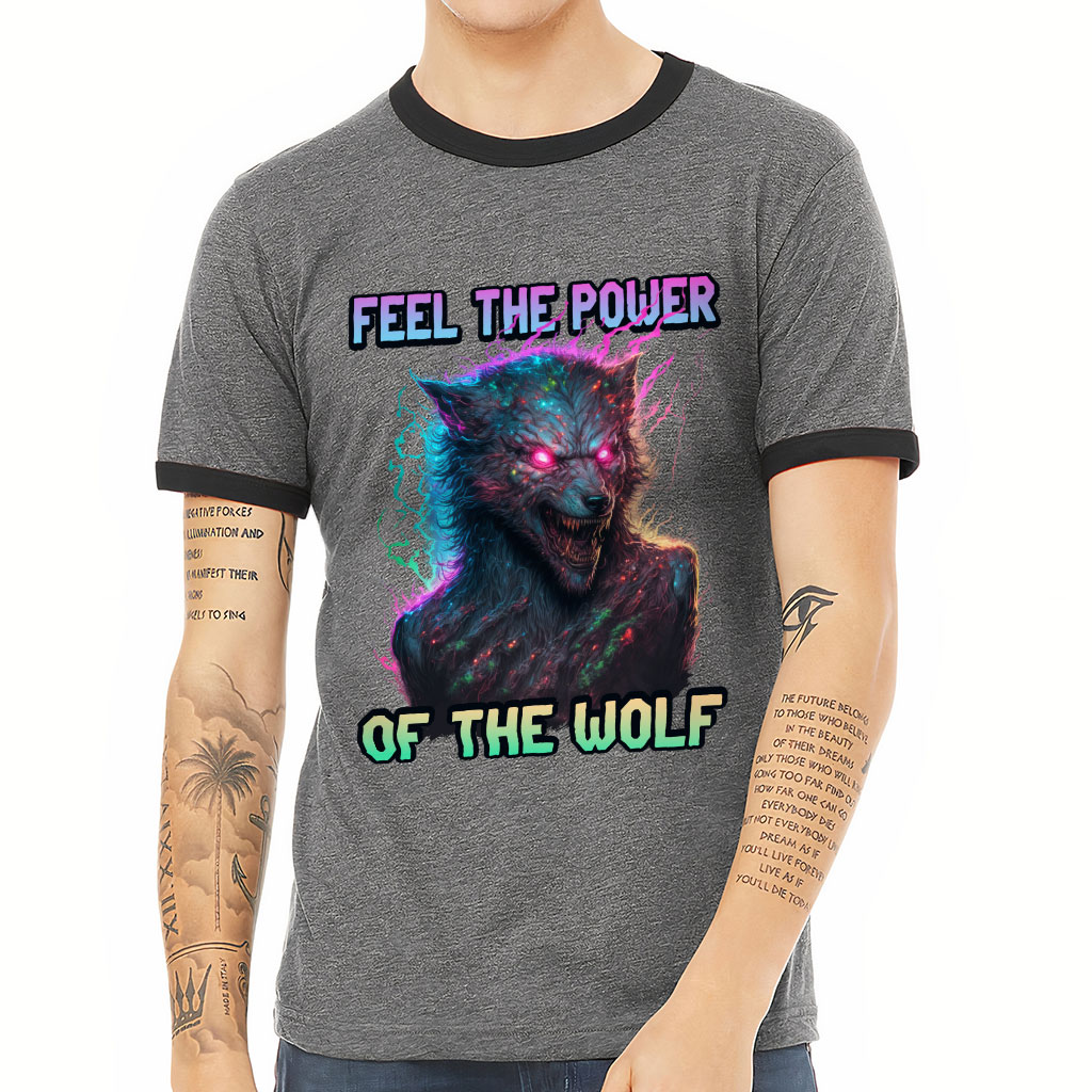 Power Of the Wolf Ringer T-Shirt – Wolf Man T-Shirt – Art Print Ringer Tee