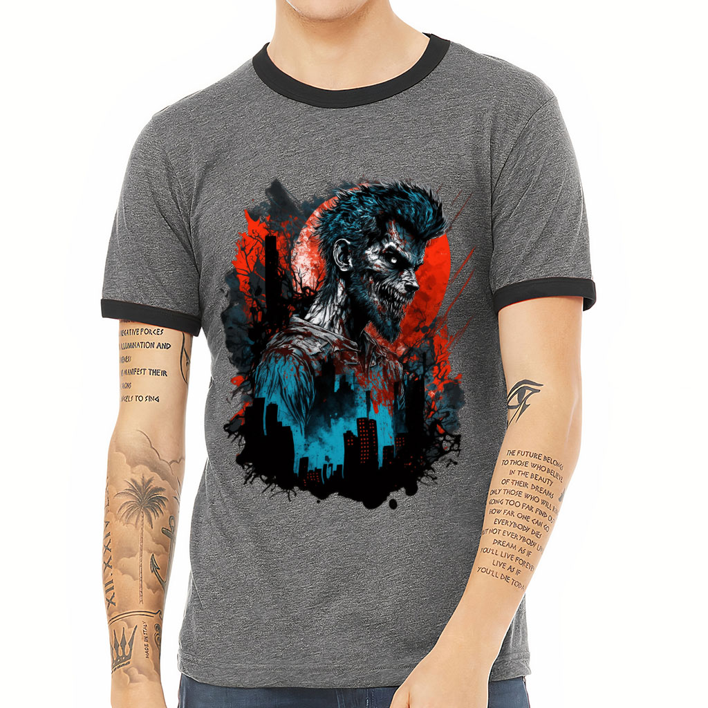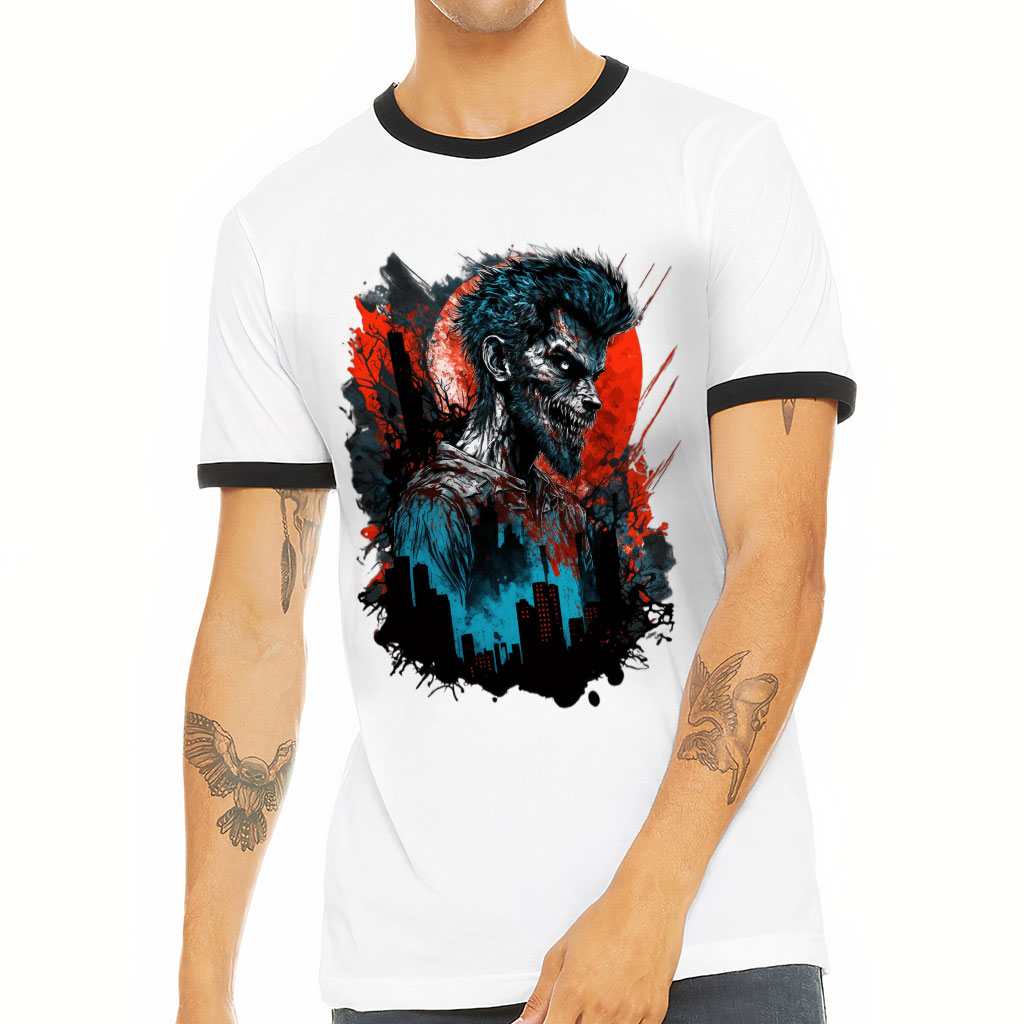 Are you looking to amp up your wardrobe? Werewolf T-Shirt is perfect for men who want to be seen and noticed. Crafted with great attention to detail, this men’s T-shirt features side-seaming and a retail fit that emphasizes the wearer’s shape without being overly constricting. Contrast ringer binding on both sleeves and neckline adds an extra touch of personality, making you stand out in any crowd. Whether paired with jeans or chinos, this shirt is guaranteed to turn heads no matter where your day takes you. Get yourself noticed today with Creepy Ringer Tee!