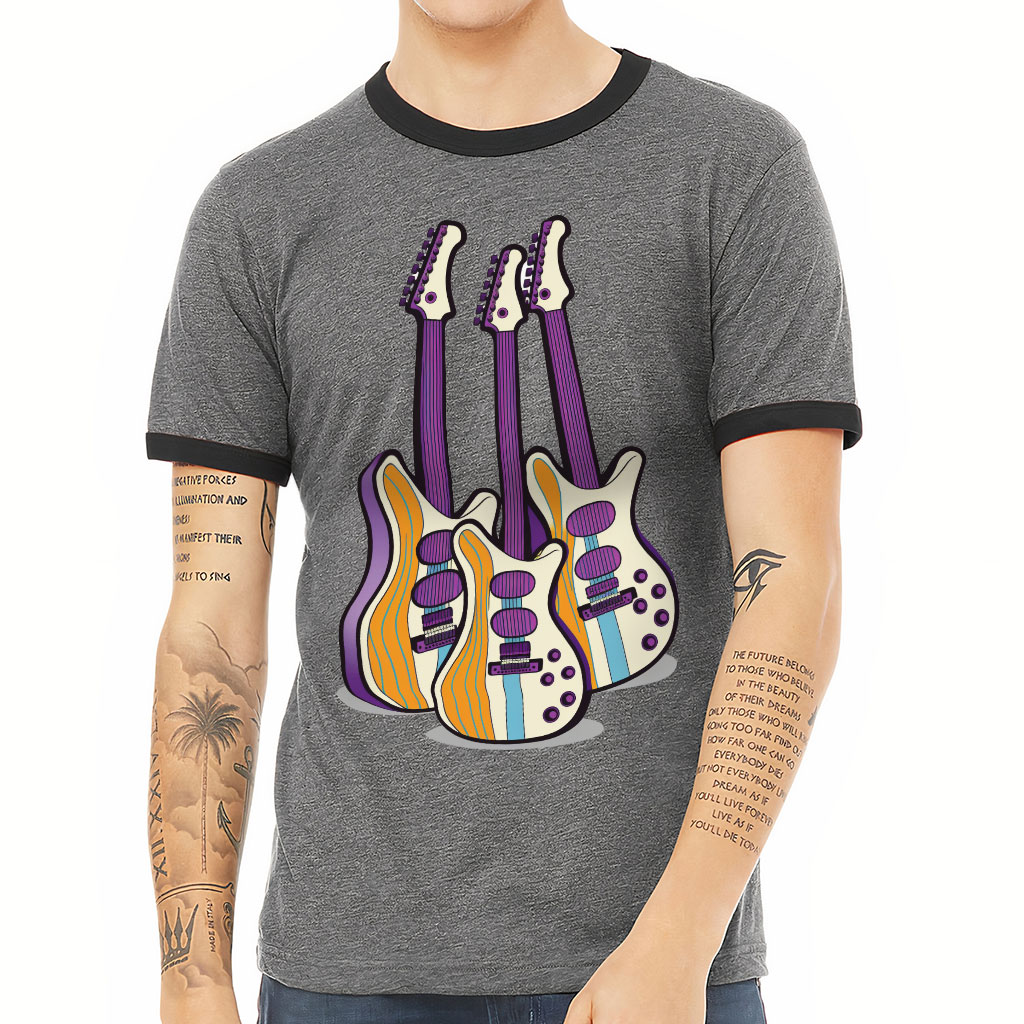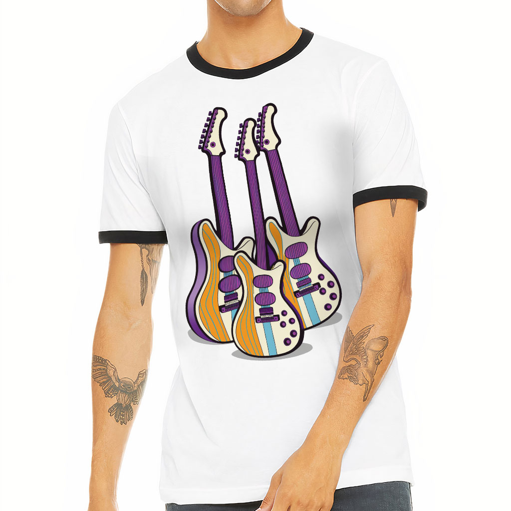 Retro Guitar Ringer T-Shirt – Music T-Shirt – Colorful Ringer Tee