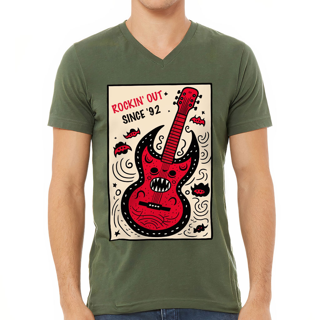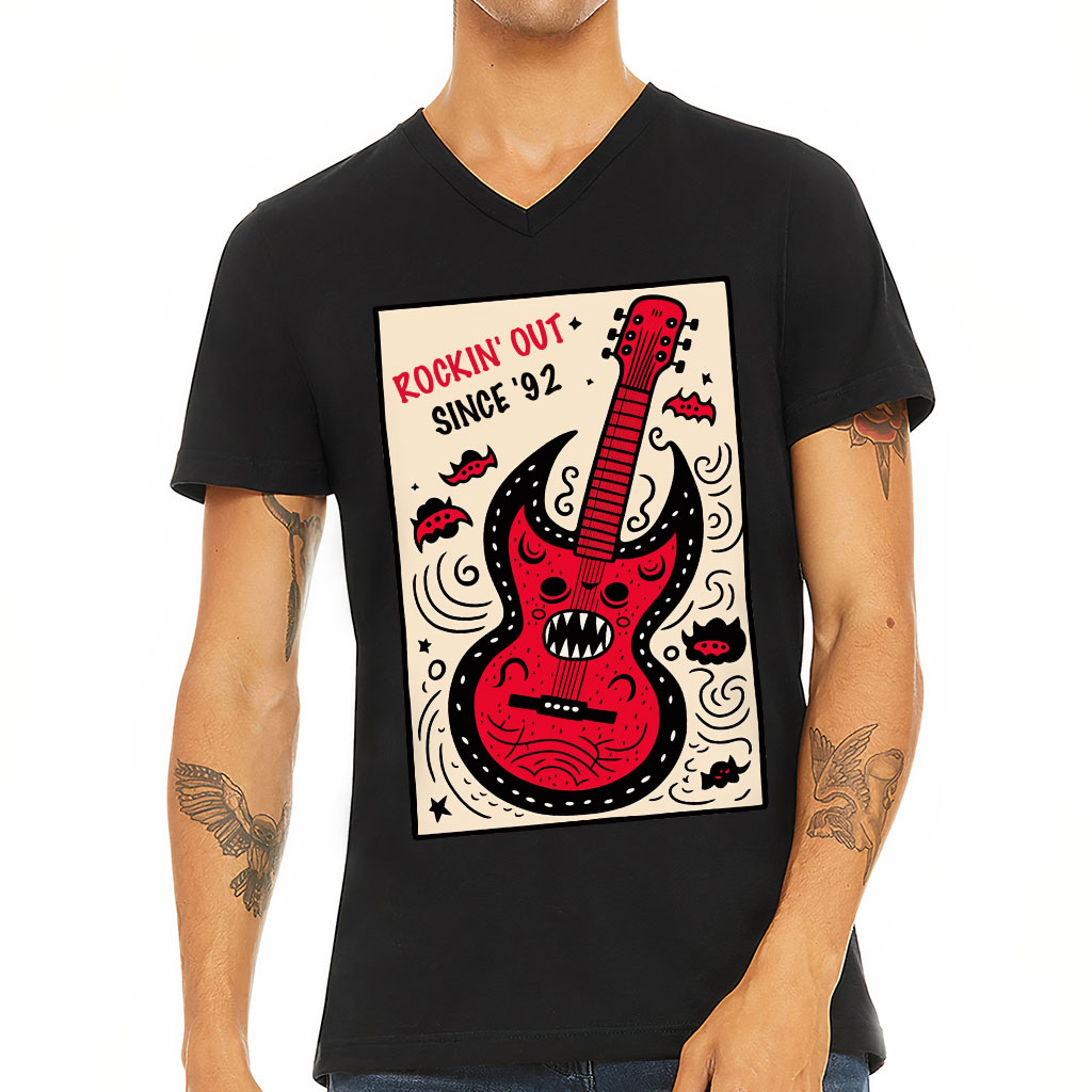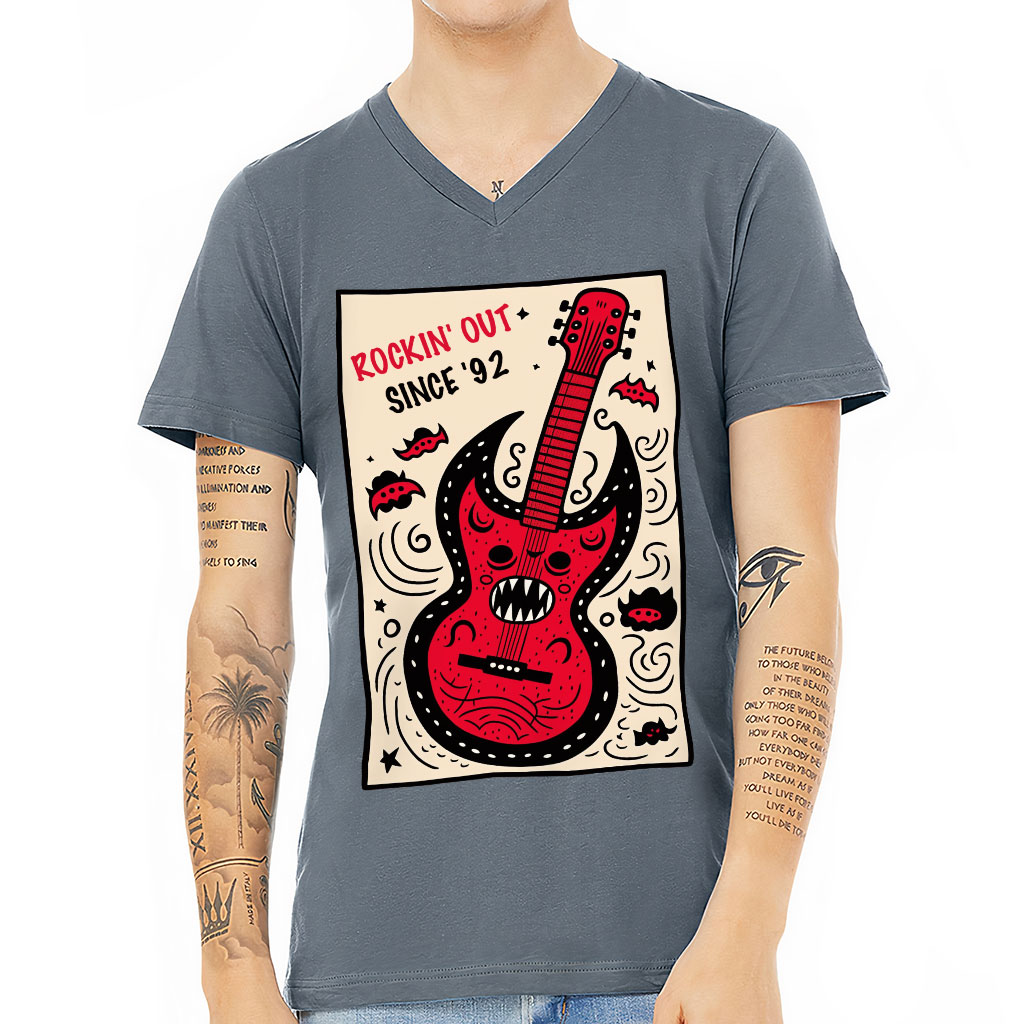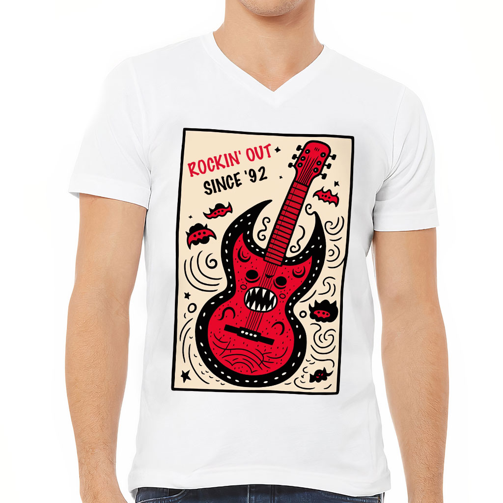 Rockin Out V-Neck T-Shirt – Rock Guitar T-Shirt – Printed V-Neck Tee