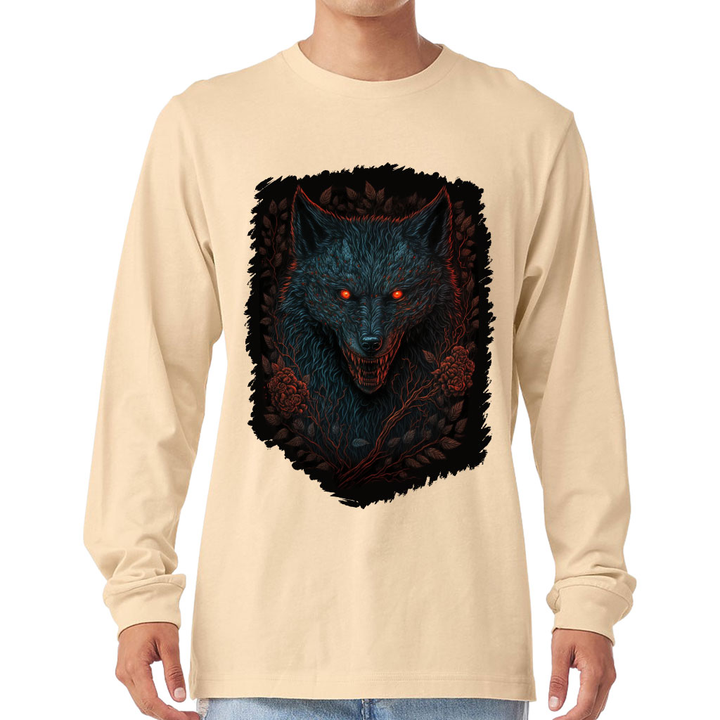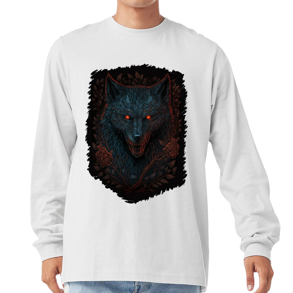 Scary Wolf Long Sleeve T-Shirt is proudly made with 7x less water than average manufacturers, in recycle-friendly facilities that also guarantee zero sweatshop conditions. Mystic Wolf Long Sleeve T-Shirt is designed and printed in California.