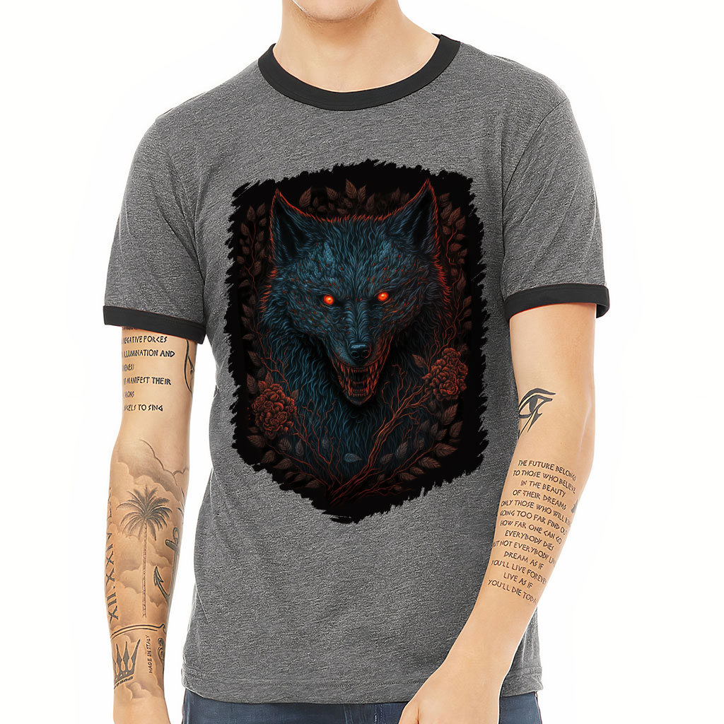 This trendy T-Shirt for men is made of a lightweight and soft cotton-poly blend, breathable and comfortable to wear. Scary Wolf Ringer T-Shirt will give you an excellent wearing experience all day.