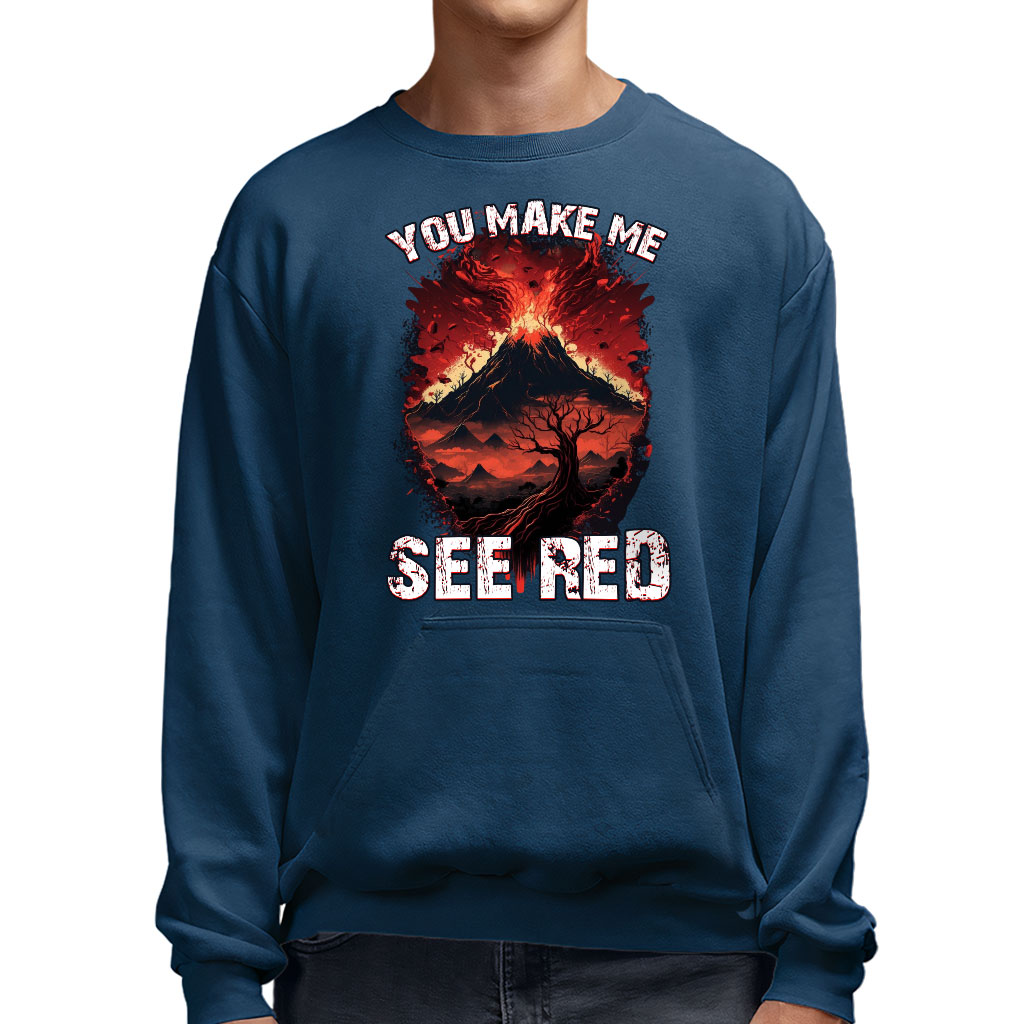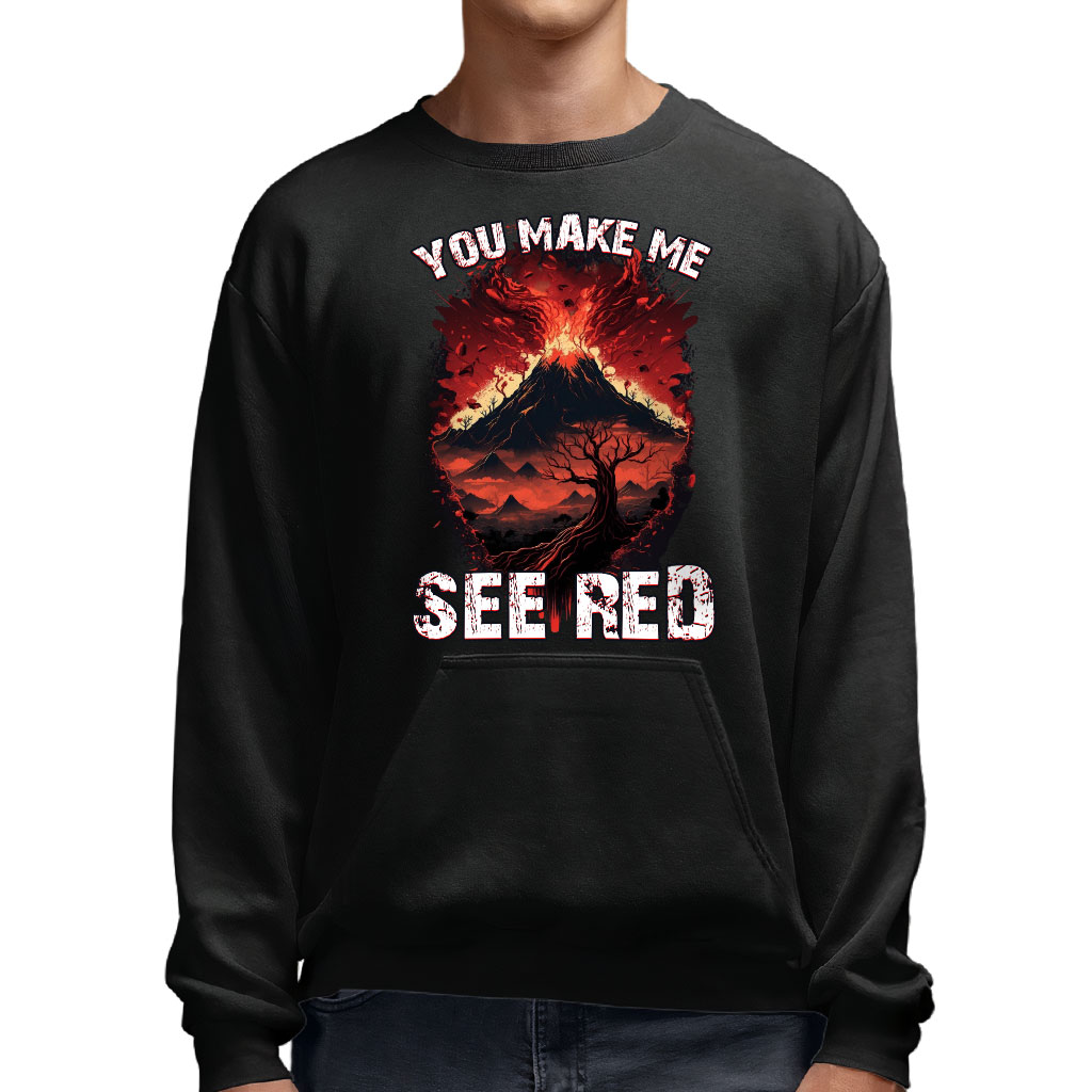 See Red Sweatshirt with Pocket – Volcano Crewneck Sweatshirt – Angry Quotes Sweatshirt