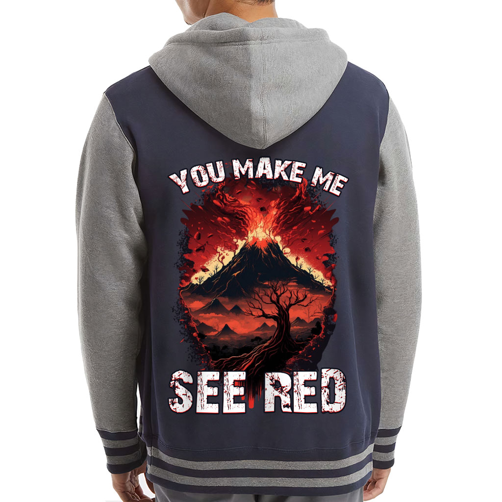 An essential closet staple, See Red Varsity Hoodie is a go-to classic for hiking, training, or just kicking back. Pair it with your favorite shorts, athletic pants, jeans, or any pants you like.