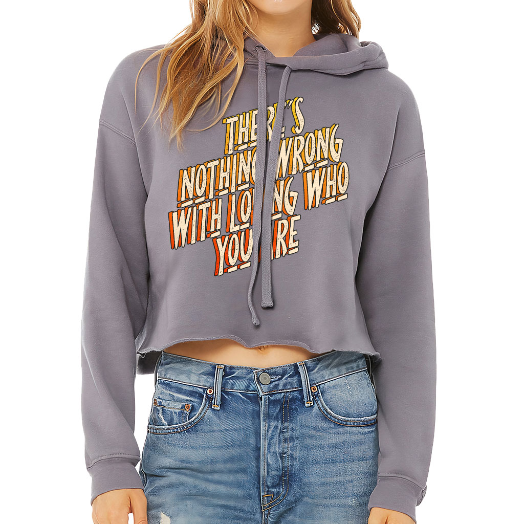 There’s Nothing Wrong With Loving Who You Are Women’s Cropped Hoodie – Inspirational Cropped Hoodie – Quotes Hooded Sweatshirt