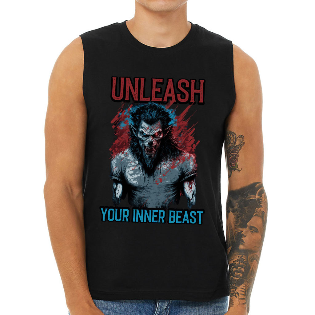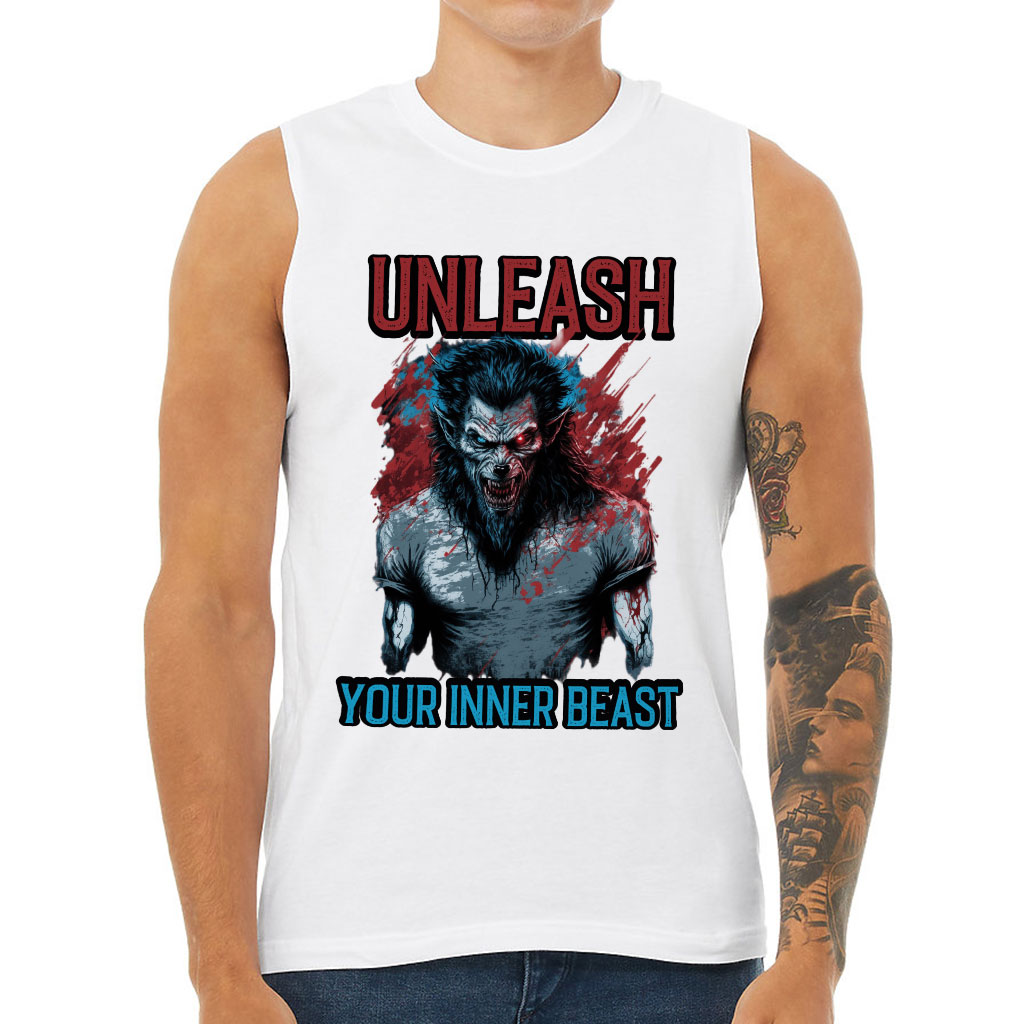 Unleash Your Inner Beast Men’s Muscle Tank – Wolf Man Men’s Sleeveless T-Shirt – Quotes Printed Tank