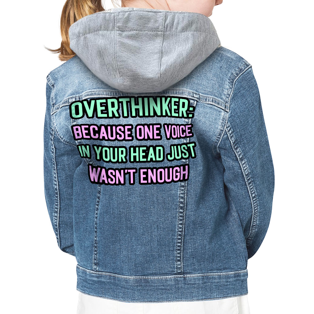 Overthinking Quotes Jean Jacket turns even the plainest clothing into a look that’s cute and bangs on trend. To complete the picture, the jacket comes with functional comfortable pockets and metal detailing.