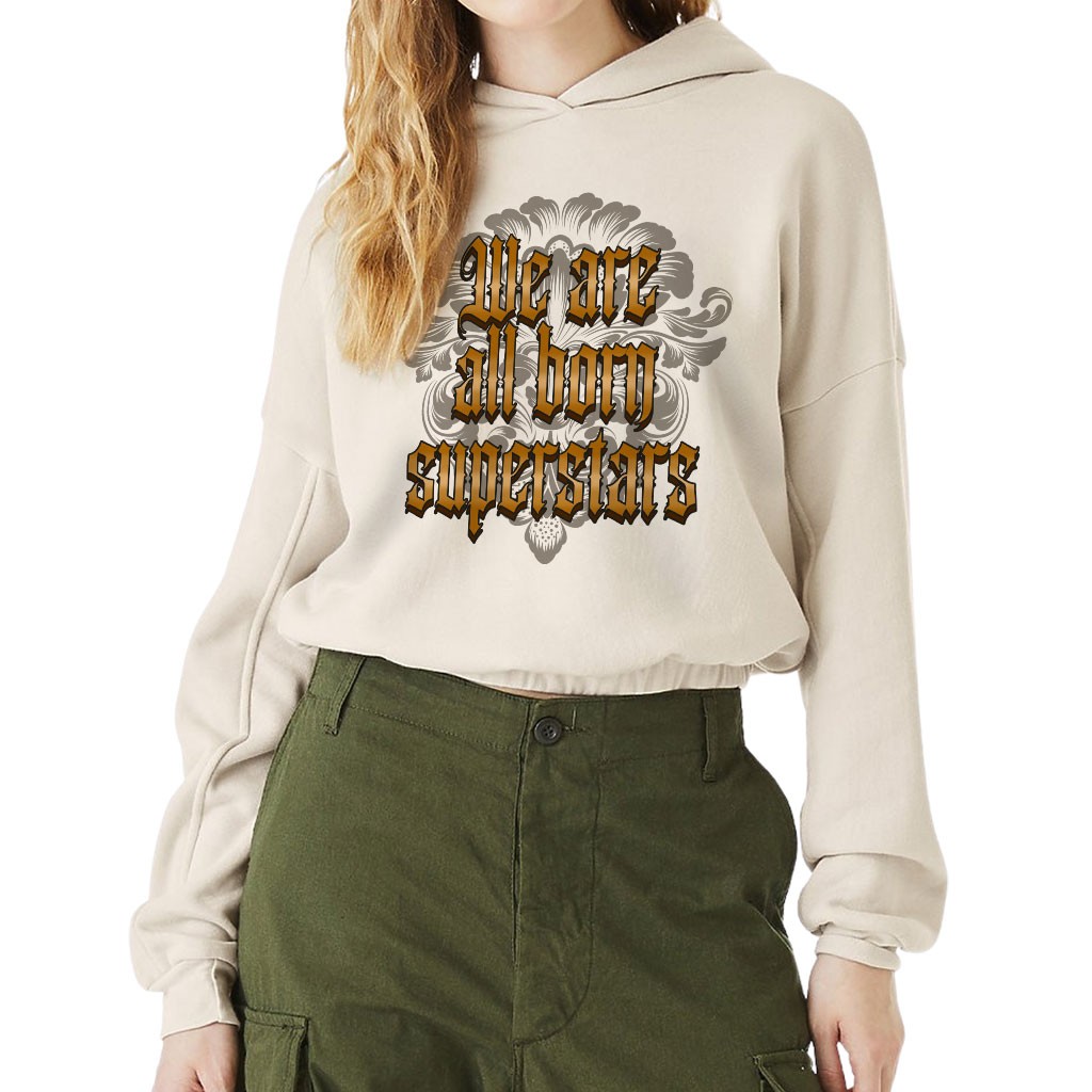 We Are All Born Superstars Cinched Bottom Hoodie is perfect for giveaways, birthday presents, Christmas & holiday gifts, swag/goodie bags, or just treating yourself!