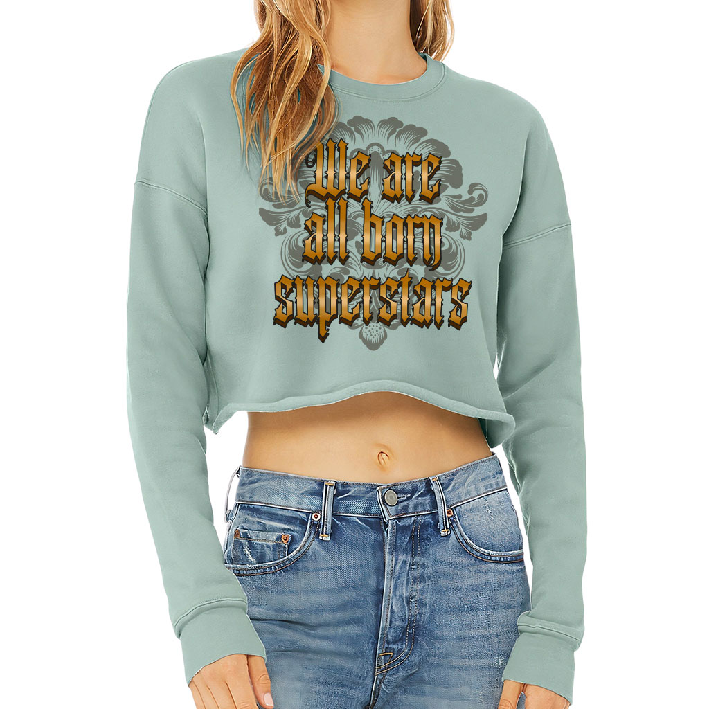 We Are All Born Superstars Cropped Sweatshirt – Motivational Women’s Sweatshirt – Self Love Crop Crew Sweatshirt