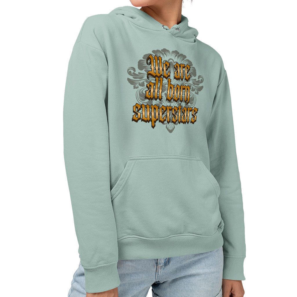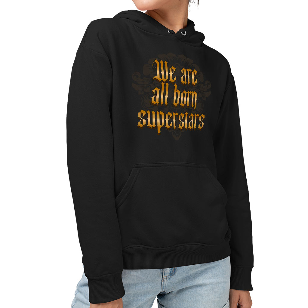 We Are All Born Superstars Sponge Fleece Hoodie is made of lightweight breathable cotton and polyester, making it comfortable to wear. Our designers pay attention to every detail of the design to make you look the best.