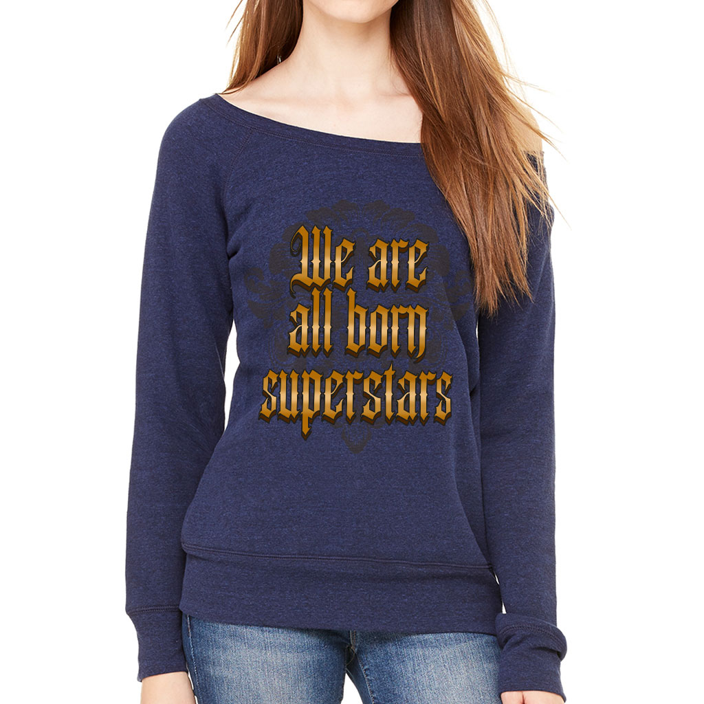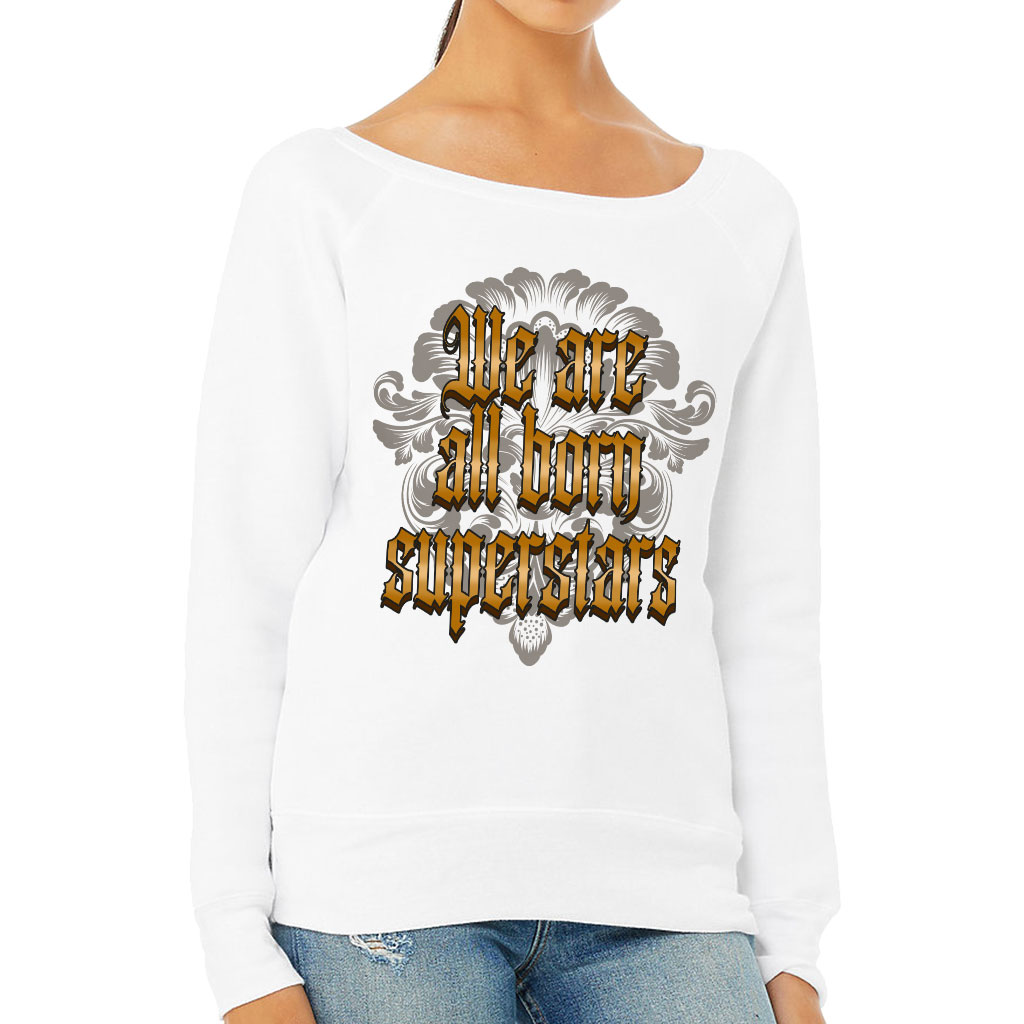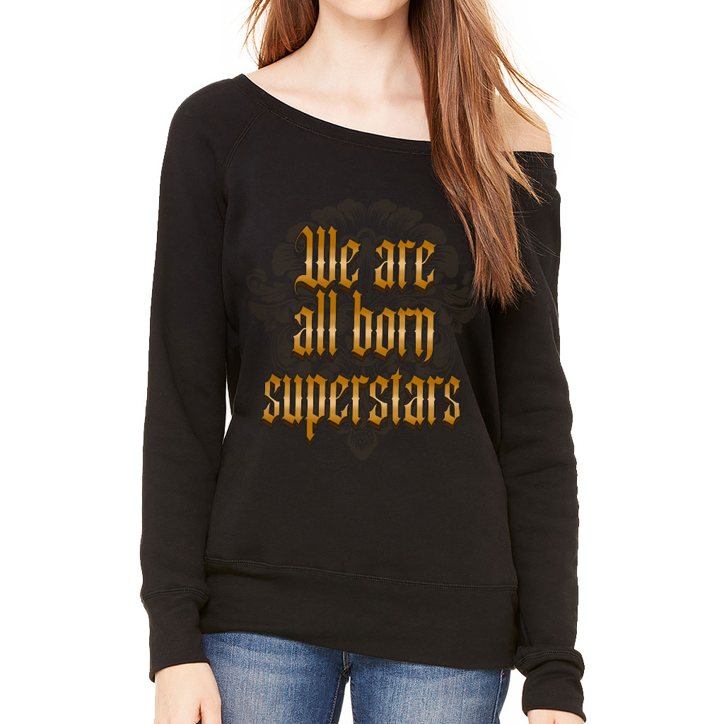 We Are All Born Superstars Wide Neck Sweatshirt is the perfect gift choice for your girlfriend, wife, mother, sisters, or friends on any celebration.
