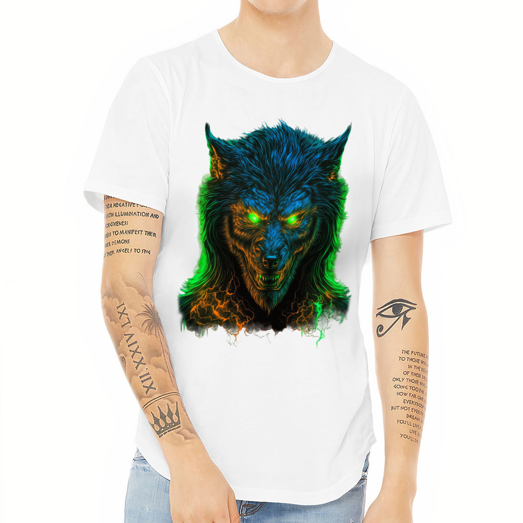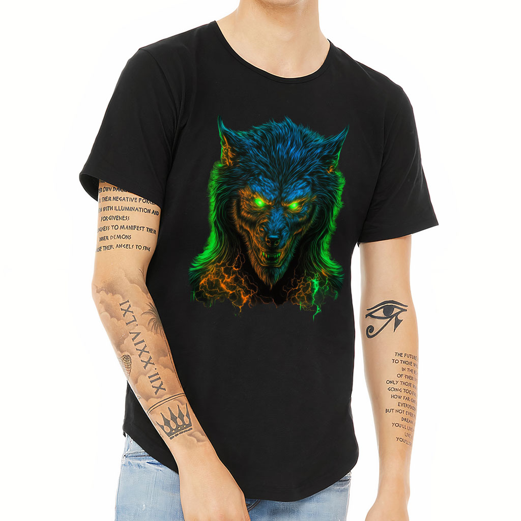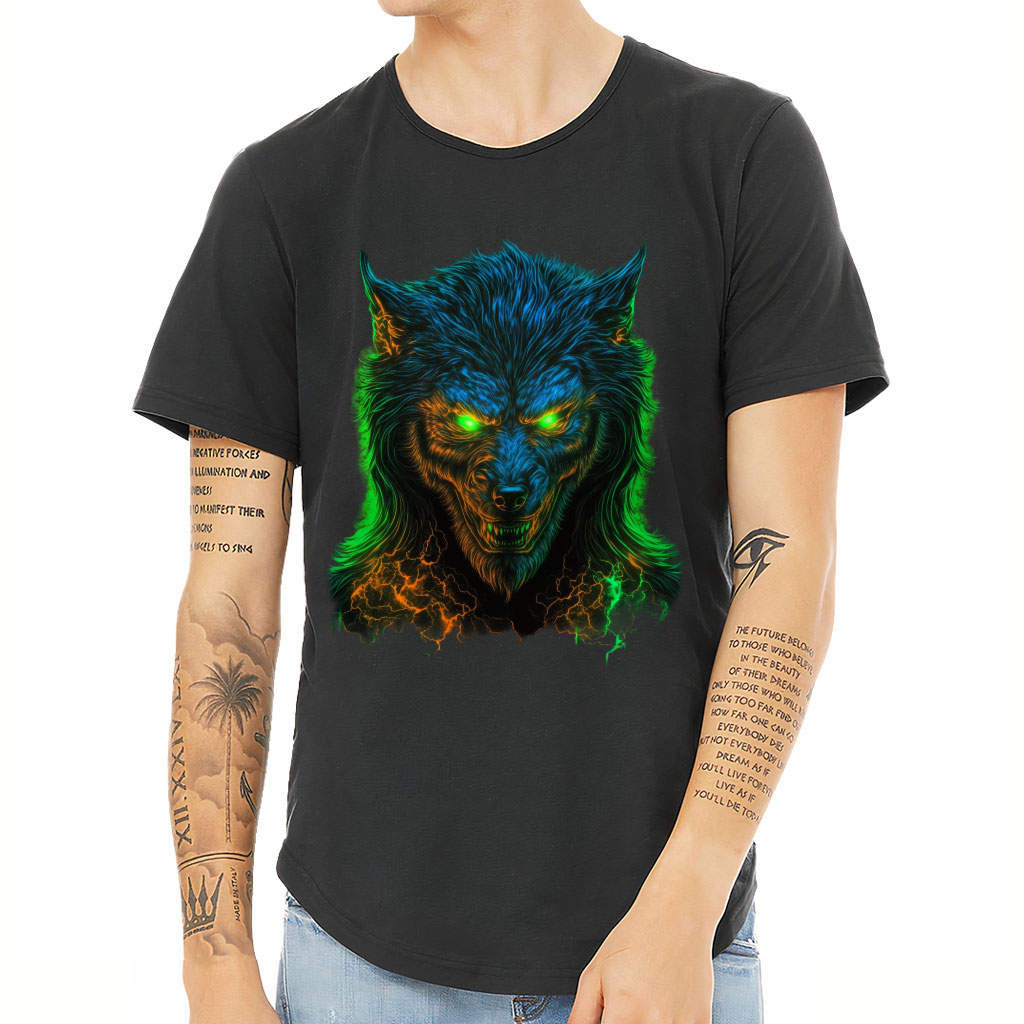 Werewolf Art Curved Hem T-Shirt Looking for a stylish and comfortable t-shirt that you can wear on any day? Check out Mythical Wolf T-Shirt! Printed Curved Hem Tee is perfect for men who want to look good and feel comfortable at the same time. The curved hem gives this shirt a unique…
