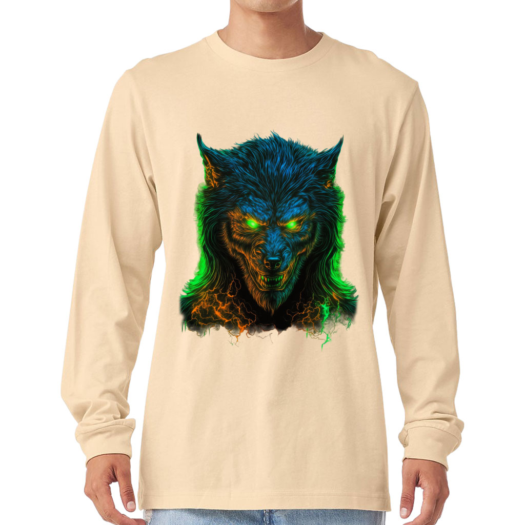 Werewolf Art Long Sleeve T-Shirt is proudly made with 7x less water than average manufacturers, in recycle-friendly facilities that also guarantee zero sweatshop conditions. Mythical Wolf Long Sleeve T-Shirt is designed and printed in California.