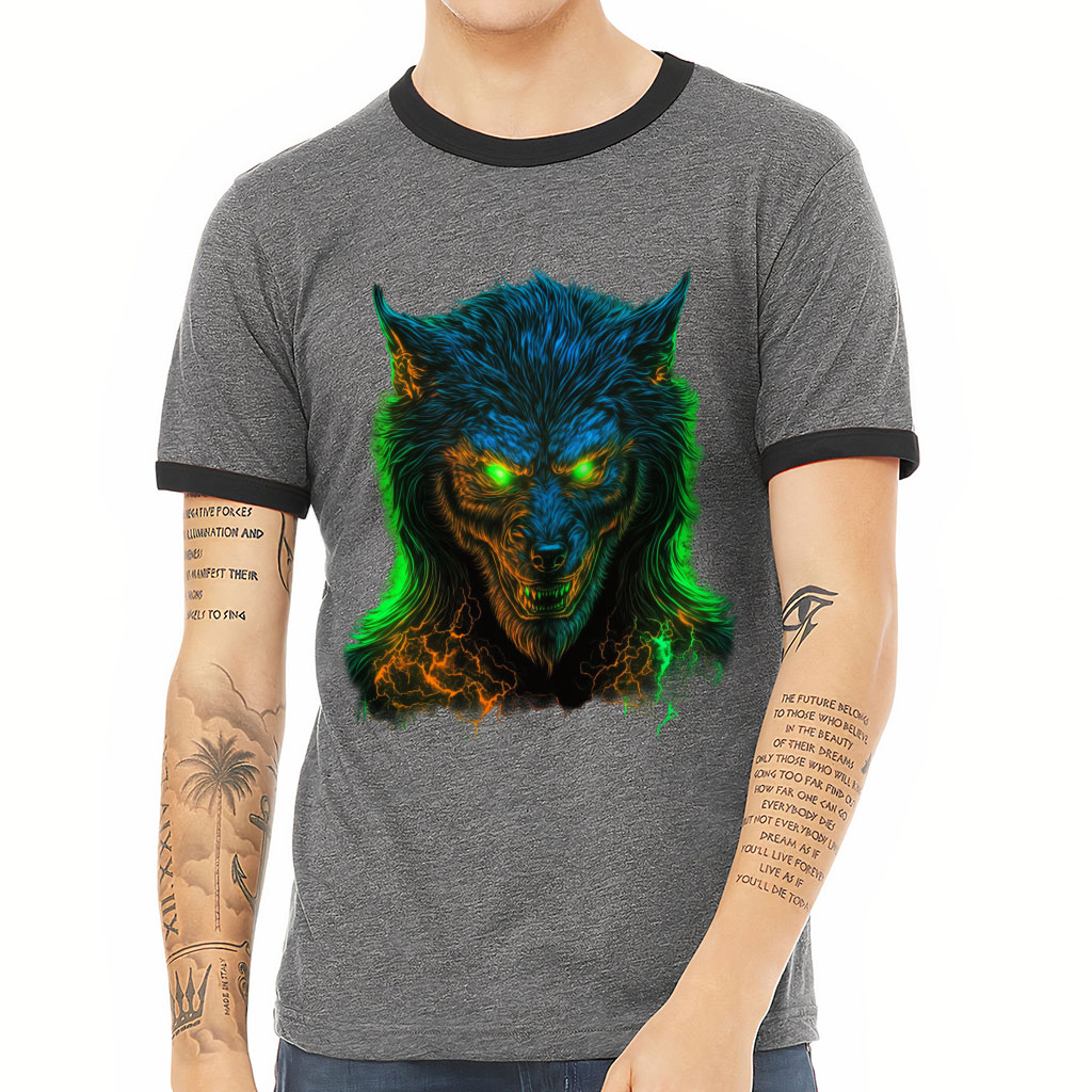 This trendy T-Shirt for men is made of a lightweight and soft cotton-poly blend, breathable and comfortable to wear. Werewolf Art Ringer T-Shirt will give you an excellent wearing experience all day.