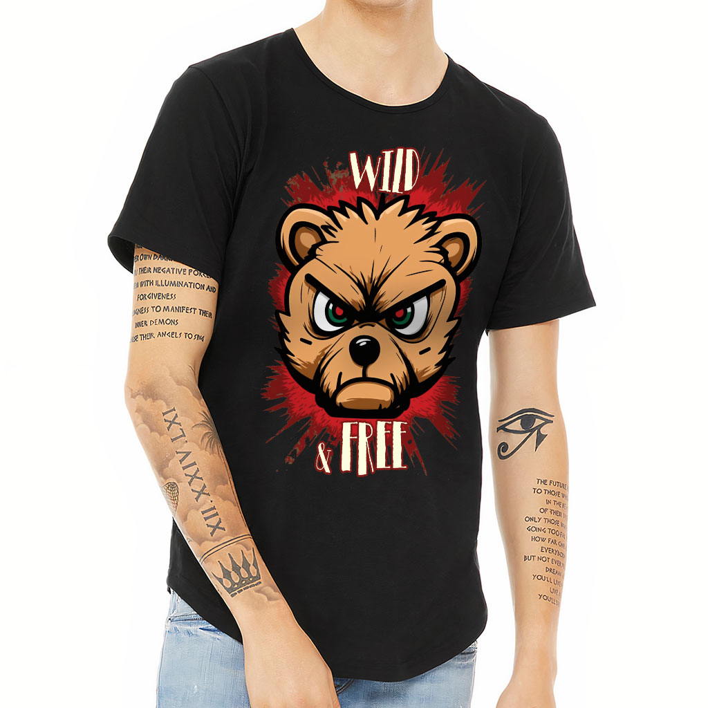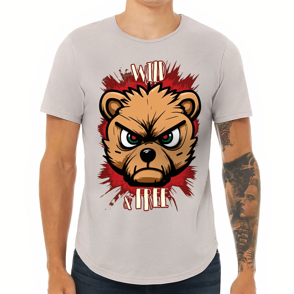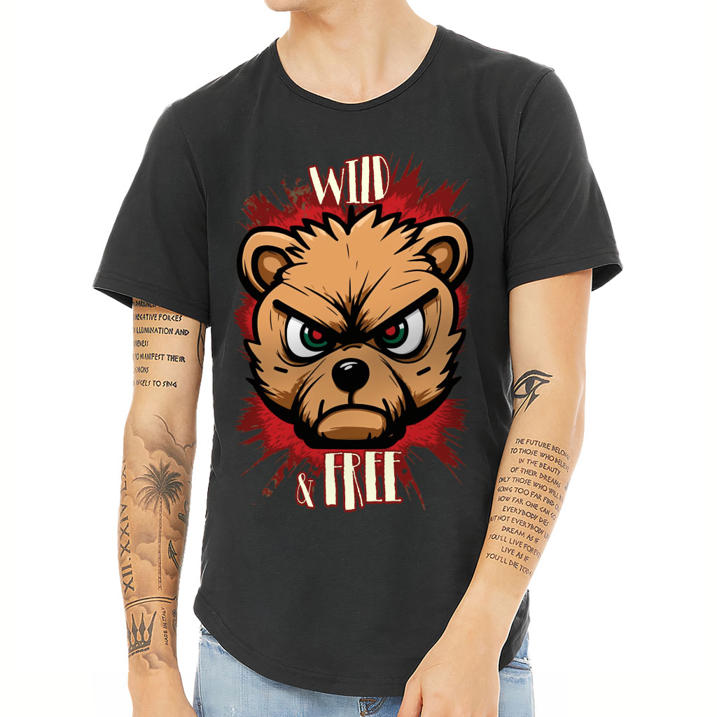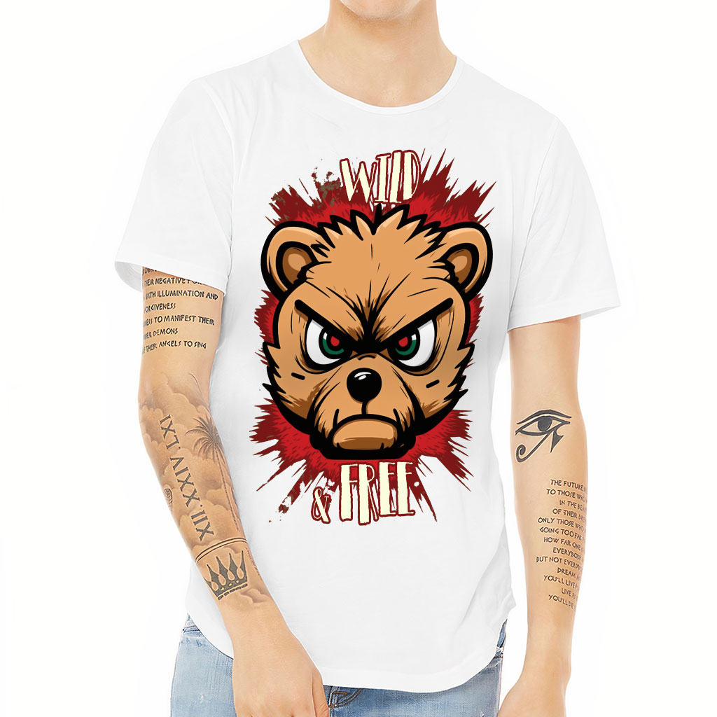 day? Check out Cartoon Bear T-Shirt! Quotes Printed Curved Hem Tee is perfect for men who want to look