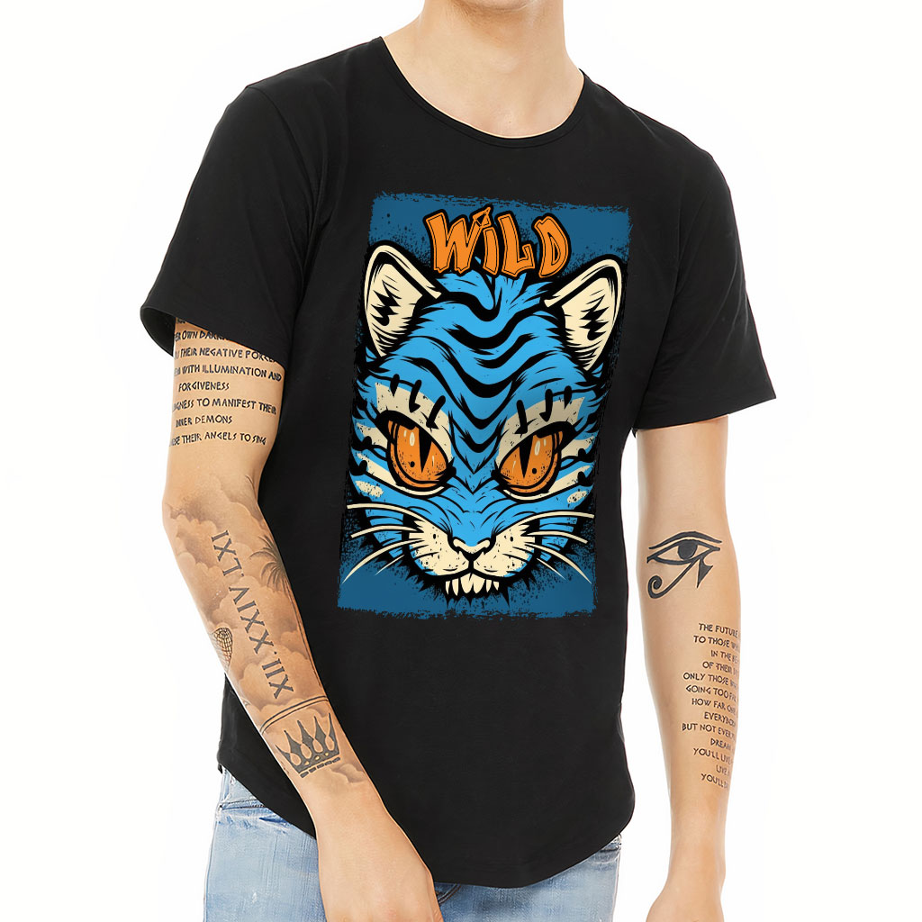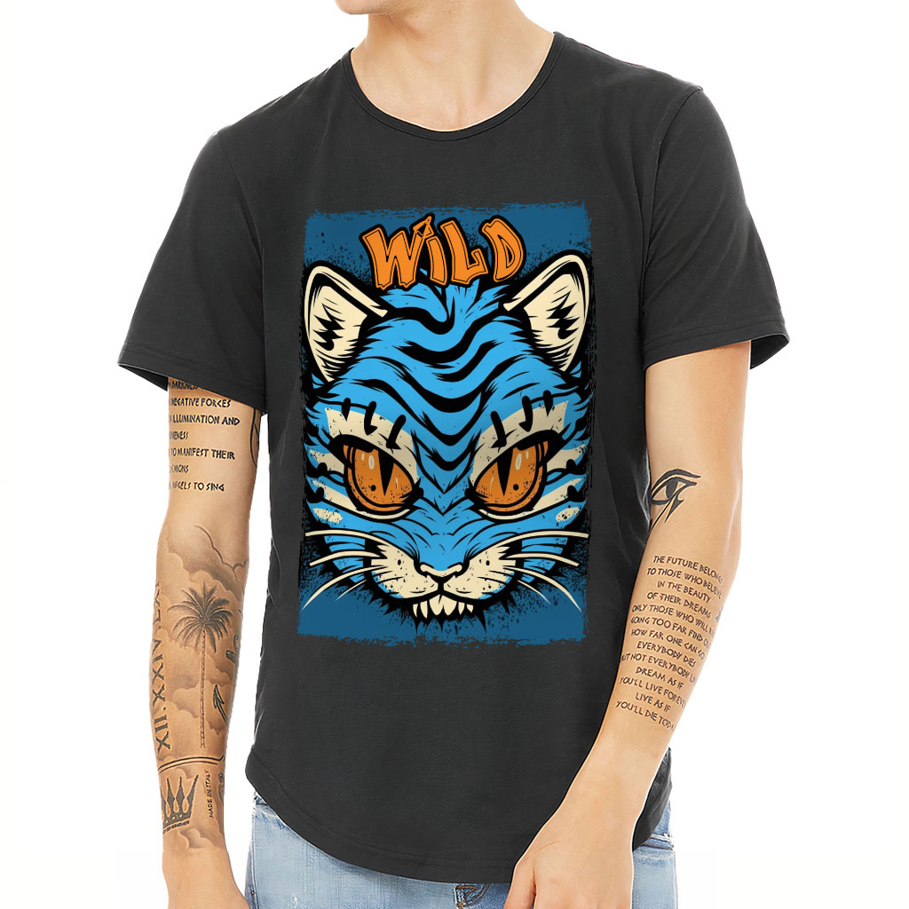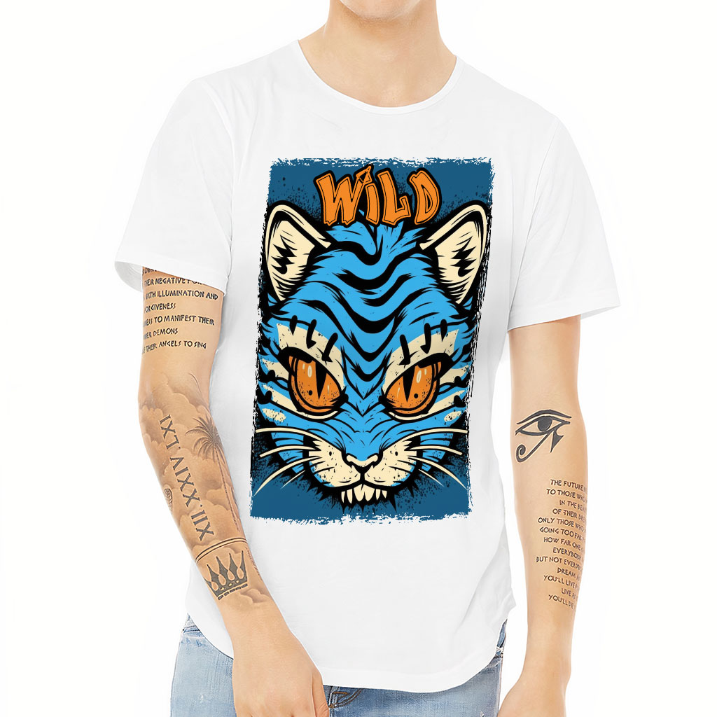 day? Check out Blue Tiger T-Shirt! Tiger Print Curved Hem Tee is perfect for men who want to look