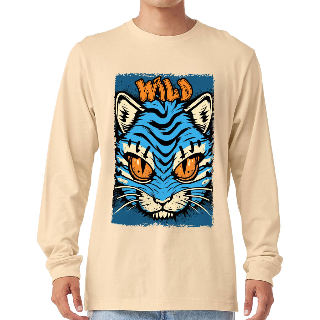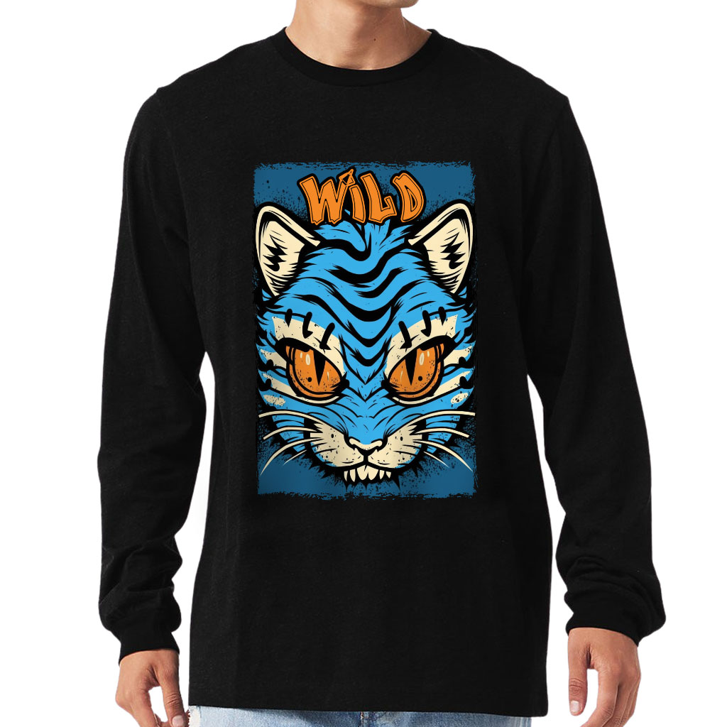 Wild Eyes Long Sleeve T-Shirt – Blue Tiger T-Shirt – Tiger Print Long Sleeve Tee