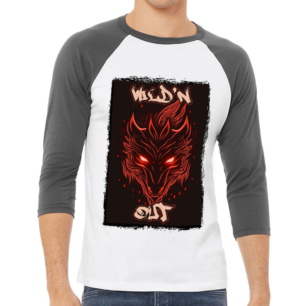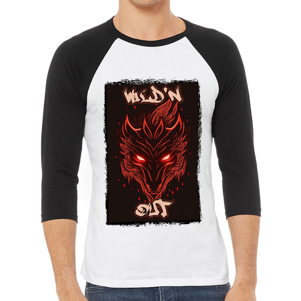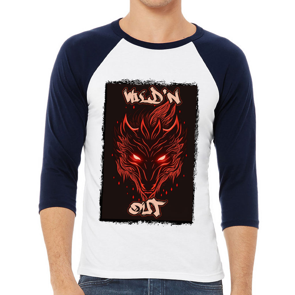 Wild Red Wolf Baseball T-Shirt – Wild’n Out T-Shirt – Printed Baseball Tee