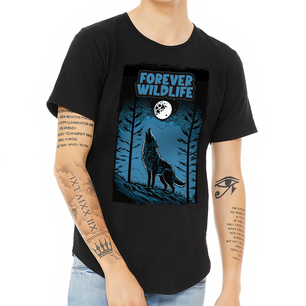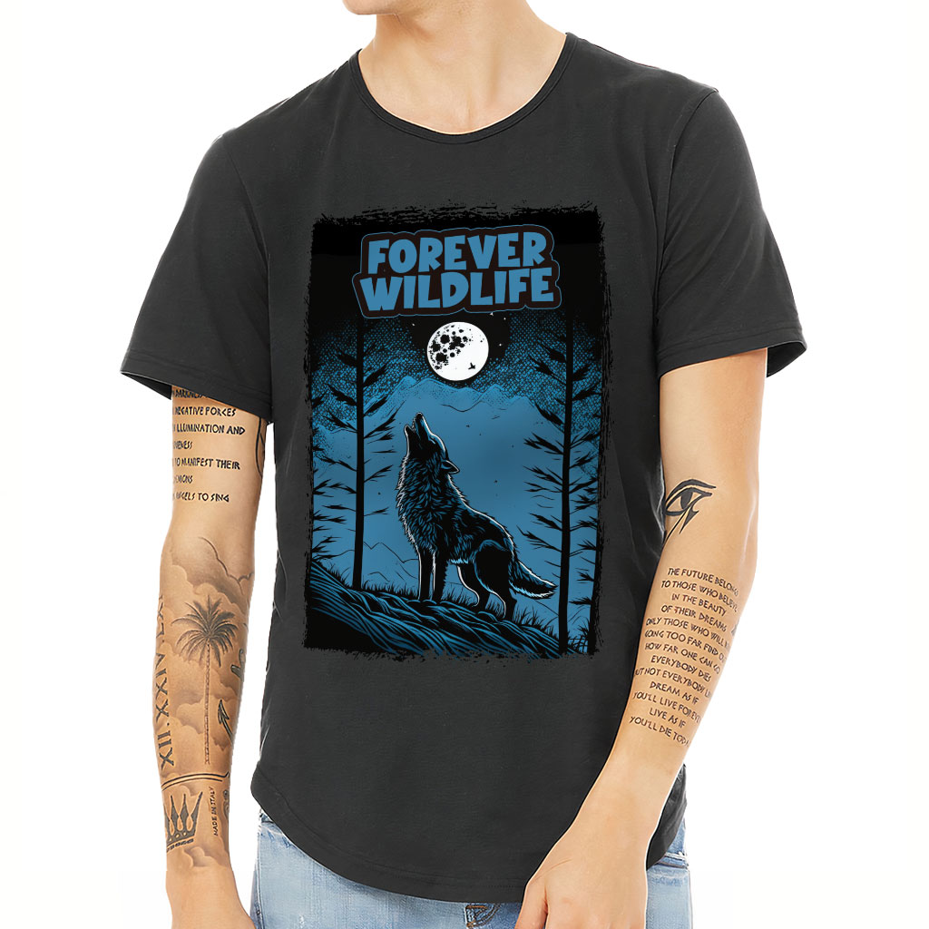 Wildlife Forever Curved Hem T-Shirt – Wolf Print T-Shirt – Quotes Curved Hem Tee