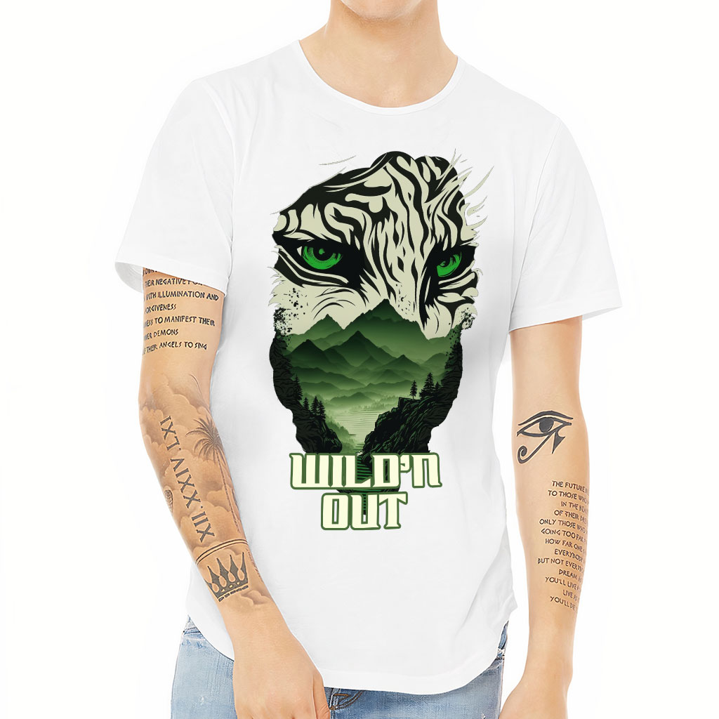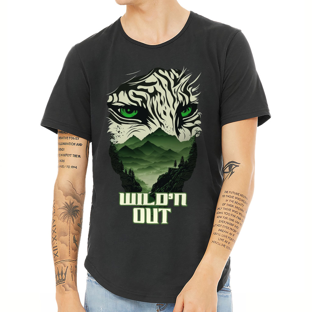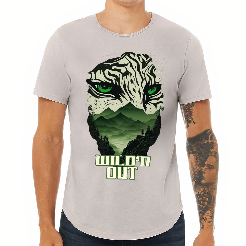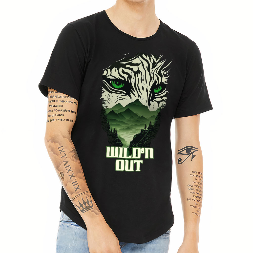 Wild’n Out Curved Hem T-Shirt – Tiger Eyes T-Shirt – Quote Design Curved Hem Tee
