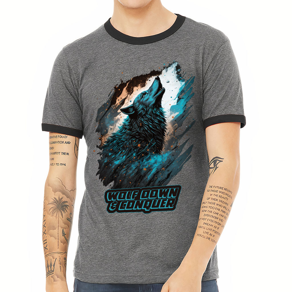 Wolf Down Ringer T-Shirt – Cool Wolf T-Shirt – Quote Design Ringer Tee